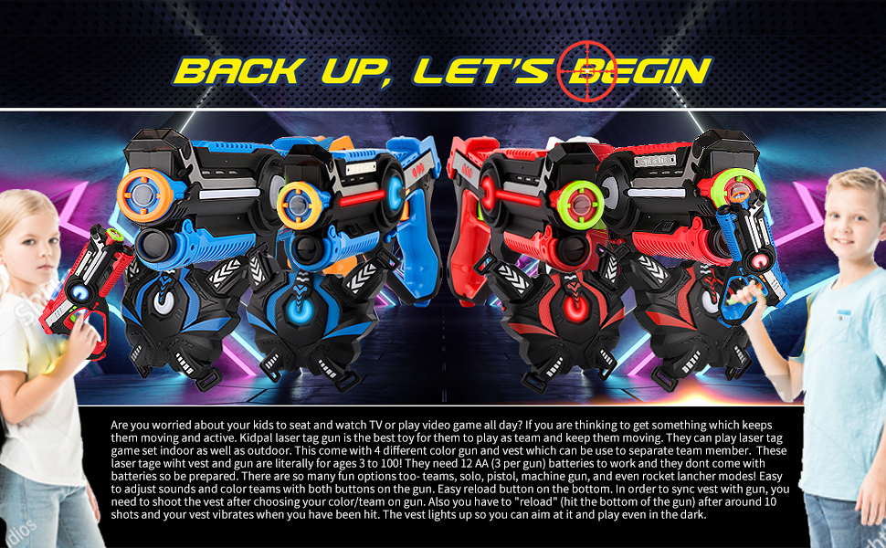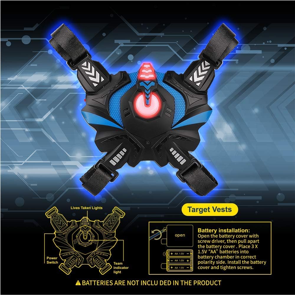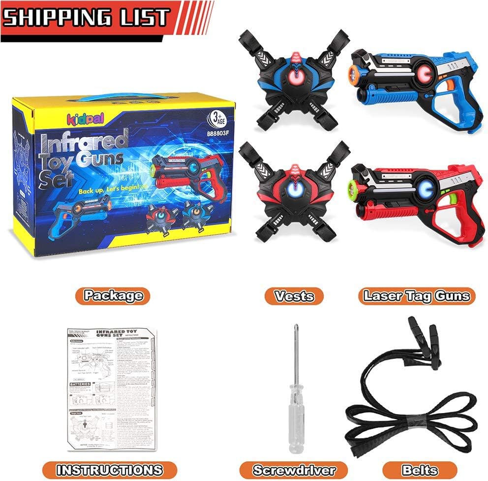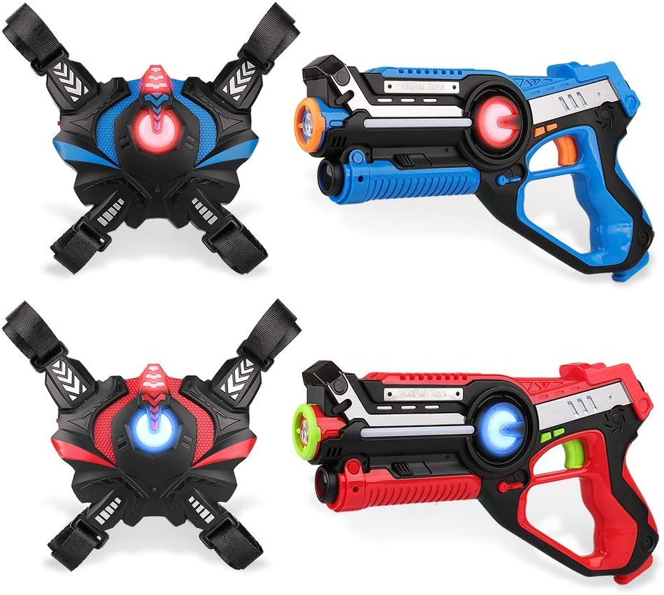 كيدبال بطاقة ليزر للاولاد من سن 8-12 سنة، مسدسات ليزر مع سترة للاعبين، مسدسات ليزر للاطفال الاولاد من سن 6 و7 و8 و9 و10 و11 و12 فما فوق، افضل خيار لعبة ليزر بالاشعة تحت الحمراء للاماكن الداخلية