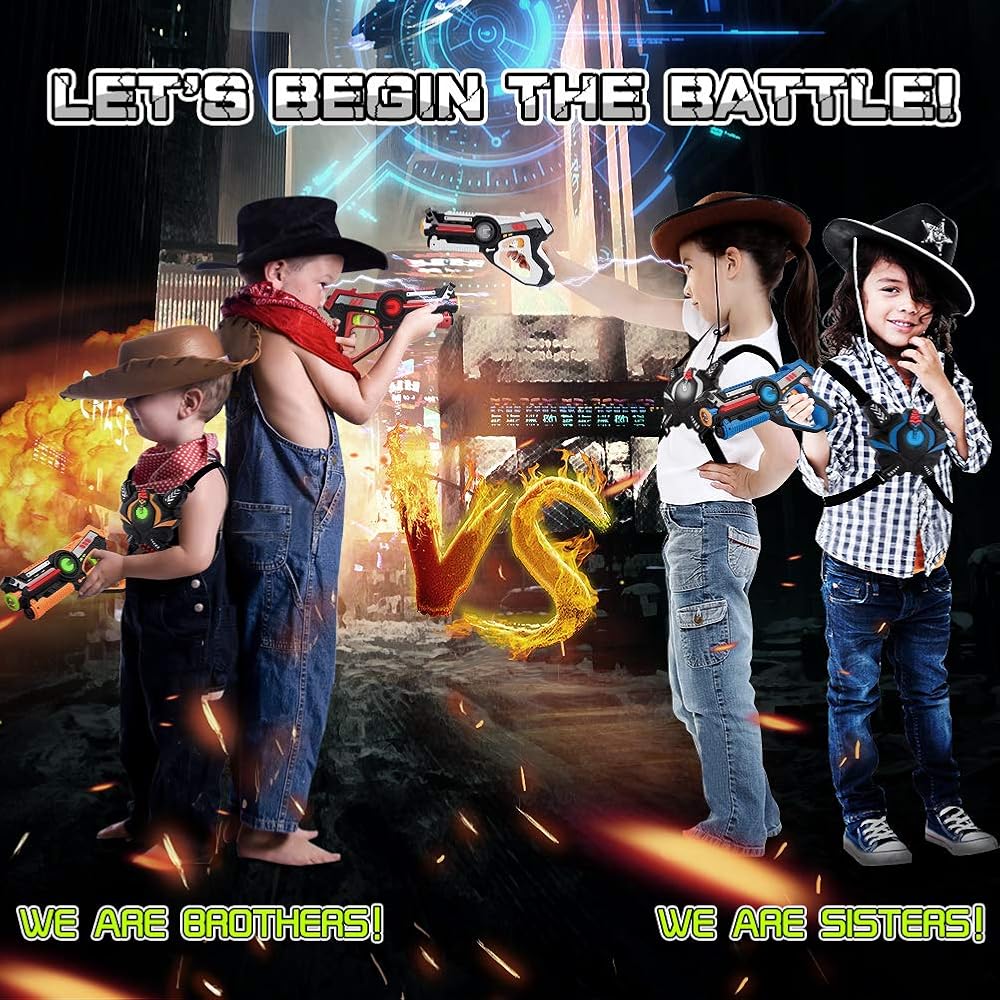 🔫مجموعة مسدسات ليزر متعددة الفرق من قطعتين - بطاقة الليزر هذه للبالغين