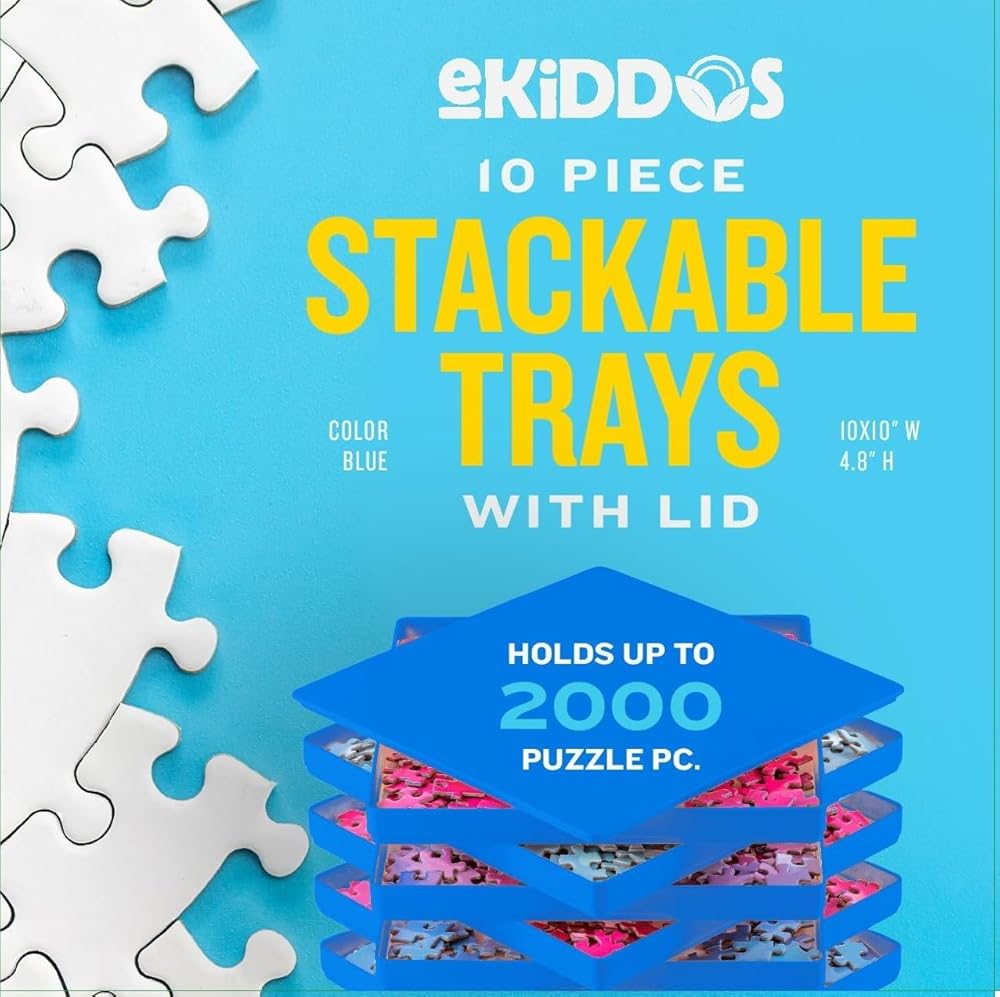 تأتي كل مجموعة من أدوات فرز قطع الألغاز من E-Kiddos مع 8 صواني قابلة للتكديس. يعد هذا مثاليًا لترتيب الألغاز الأكبر حجمًا لأنه يوفر حاوية تكديس تسمح لك بالاحتفاظ بالقطع في مكان واحد - مما يوفر لك الوقت والجهد والمساحة!