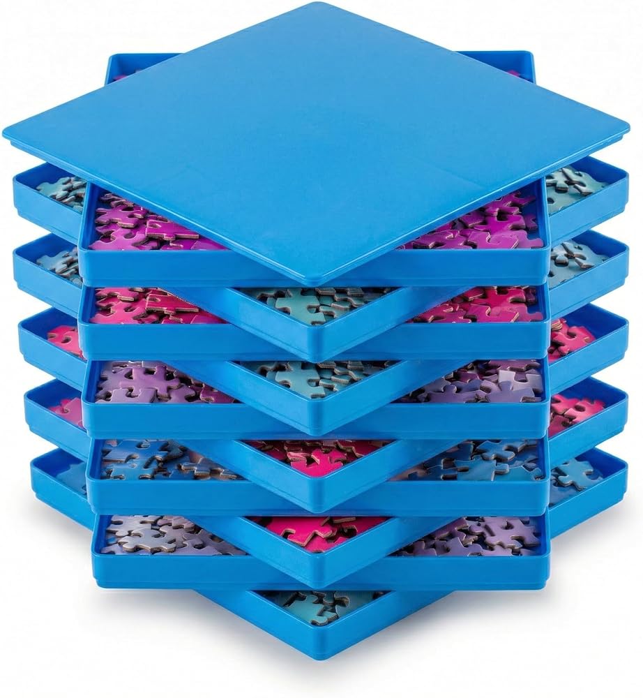 يبلغ مقاس كل صينية 20.32 × 20.32 سم وهي كبيرة بما يكفي لتخزين ما يصل إلى 1500 قطعة ألغاز. ليست هناك حاجة للحصول على مساحة تخزين منفصلة لكل نوع لأنه يمكنك ترتيبها جميعًا بشكل مثالي في منظم واحد.