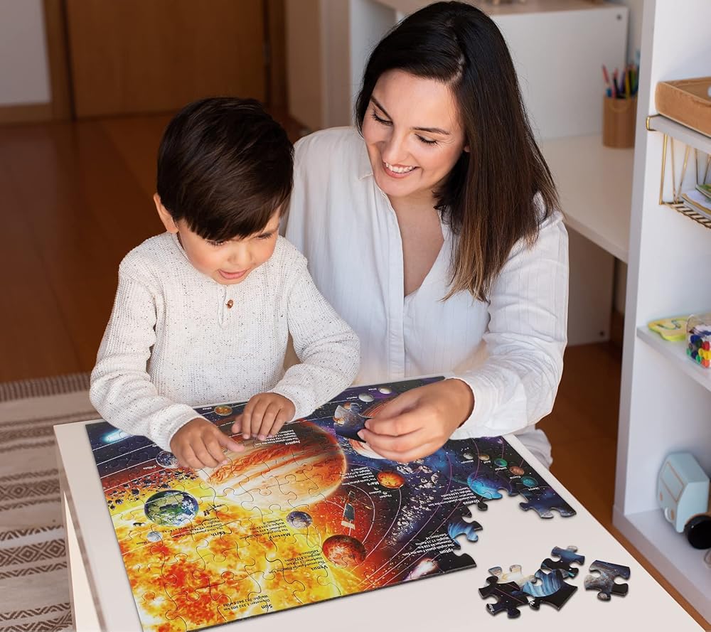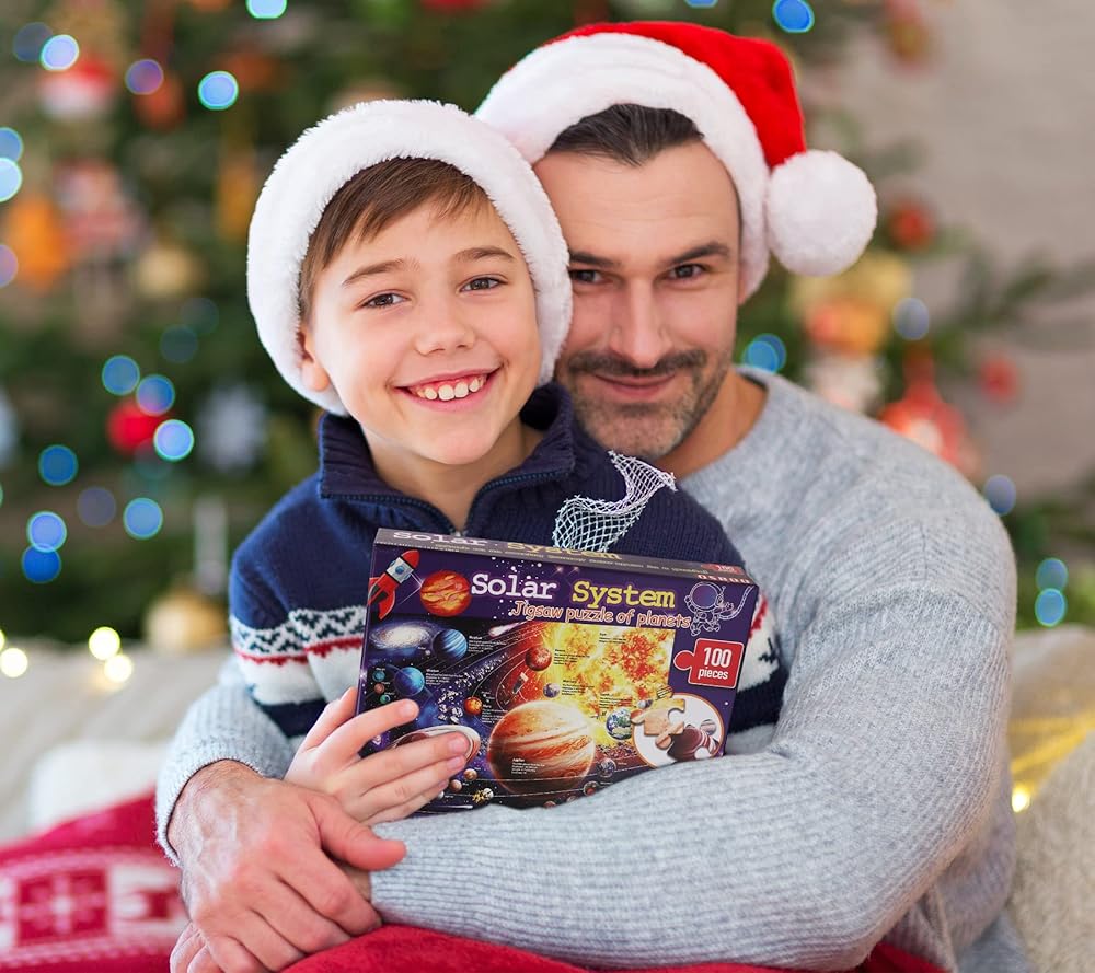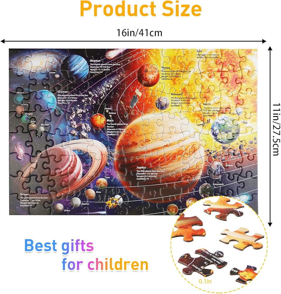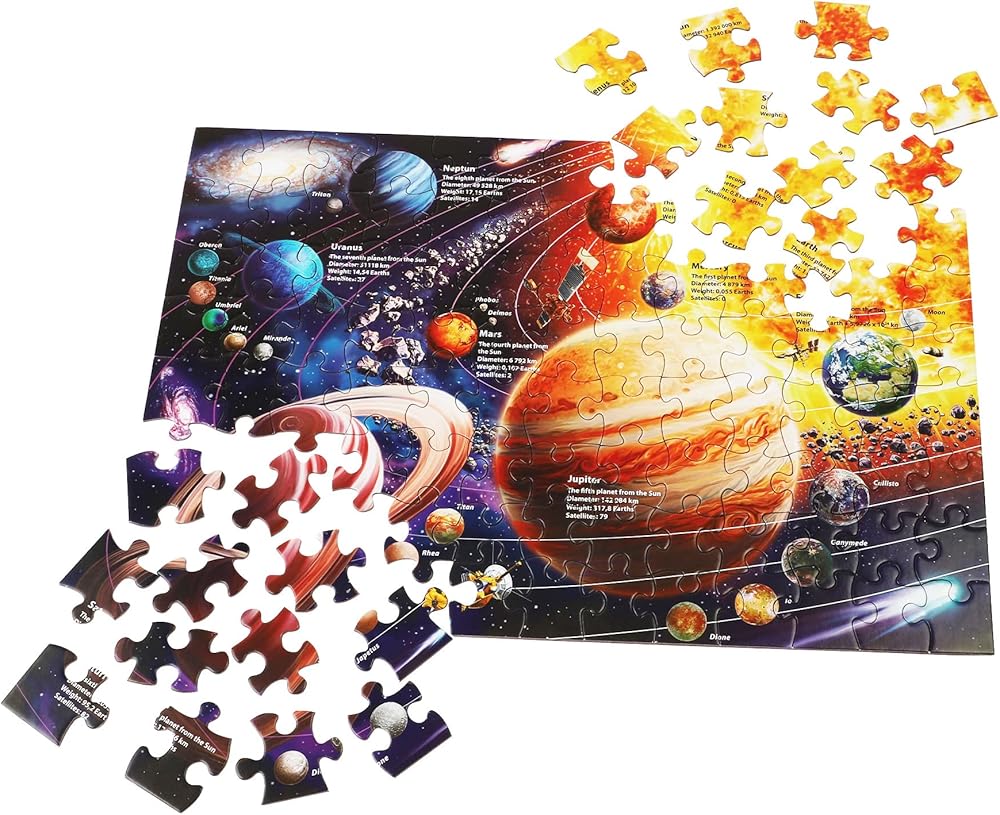 100 قطعة من أحجية الصور المقطوعة الأرضية للأطفال من سن 4-8، 3-5، 6-8، 8-10 للأولاد والبنات. طريقة مسلية للتواصل والتعلم مع طفلك. علمهم عن الكواكب وأطلق محادثات مثيرة للاهتمام حول الفضاء وما بعده.
