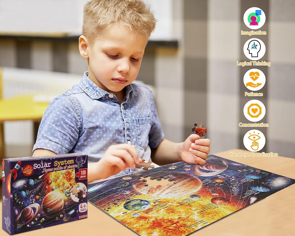 بازل للاطفال من سن 4-8، 3-5، 6-8، 8-10 سنوات للاولاد والبنات - 100 قطعة من احجية النظام الشمسي - العاب تعليمية علمية للاطفال من 5-7 كواكب للاطفال، العاب النظام الشمسي