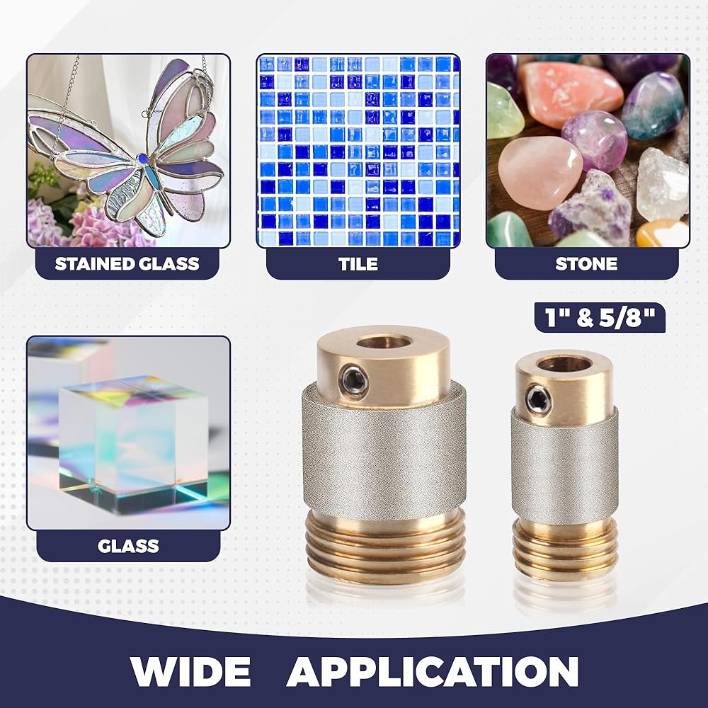 سهلة الاستخدام: تتضمن العبوة 1 × لقم مطحنة زجاجية للزجاج الملون 5/8 بوصة، 1 × لقم مطحنة زجاجية للزجاج الملون 1 بوصة، 2 × مصهر احتياطي، 2 × مفتاح ربط على شكل حرف L للتعديل والإصلاح. تحتوي على جميع الملحقات التي تحتاجها لاستبدال لقم الثقب الماسي، مما يجعلها أكثر ملاءمة للاستخدام.