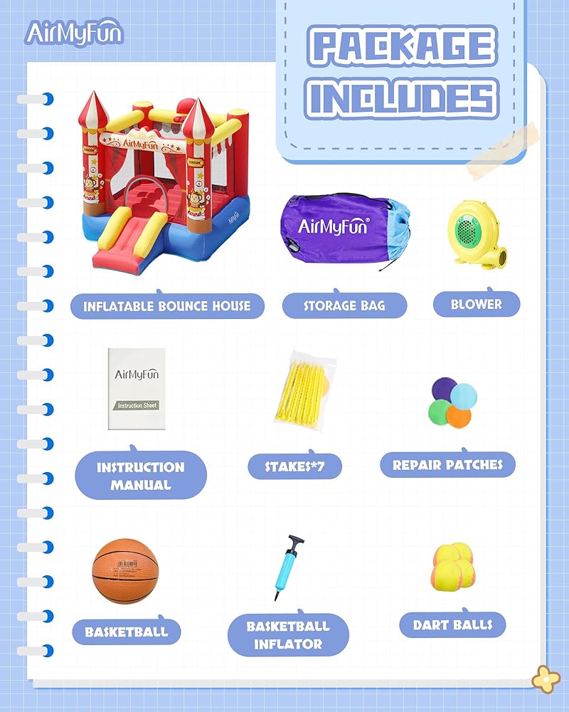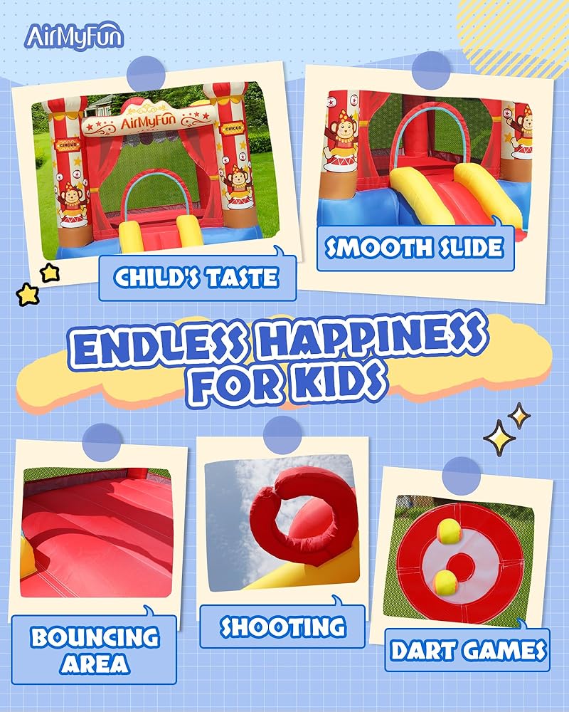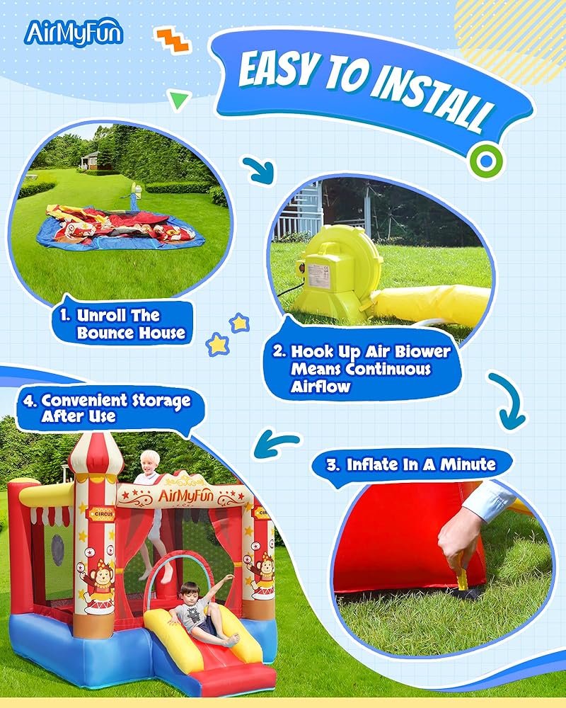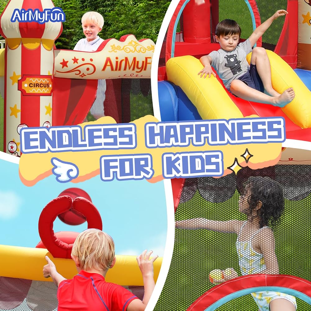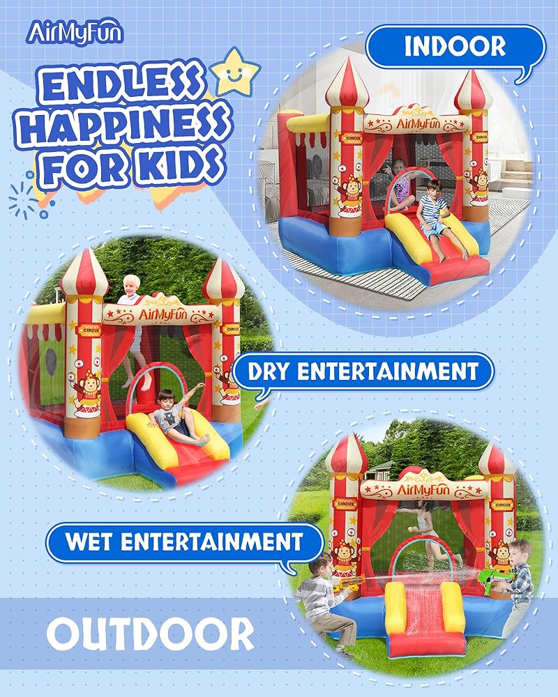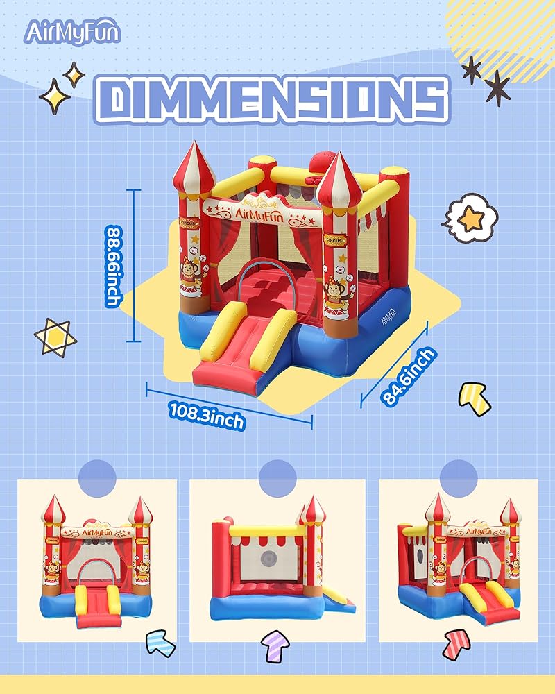 【سعة مناسبة】أبعاد هذا المنزل النطاط اير ماي فن هو 104 84 88 (انش). بدلة هزاز قابلة للنفخ للأعمار من 3 إلى 12 سنة. الحد الأقصى للوزن الإجمالي: 200 باوند. مناسبة للأطفال 2-3 للعب.