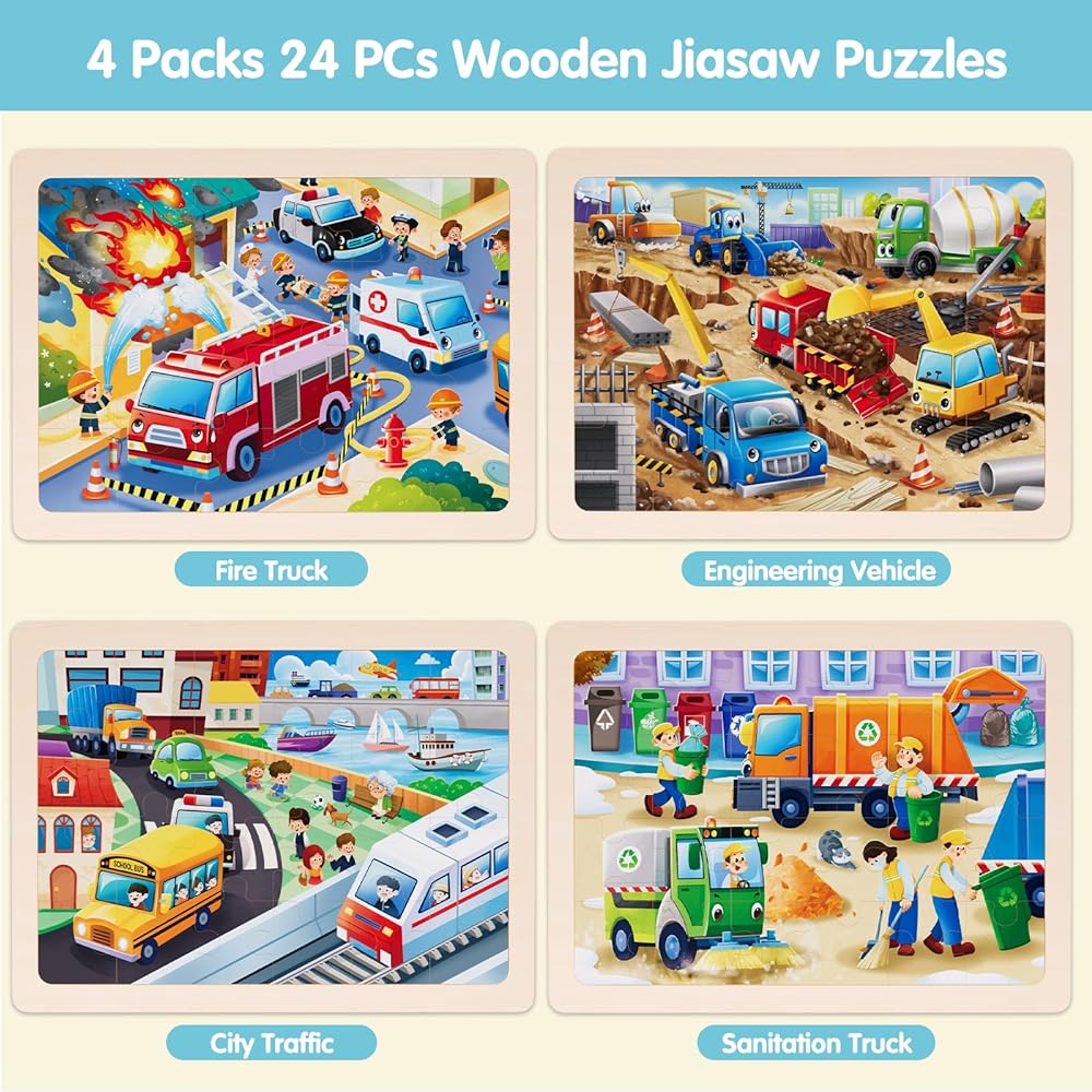 • 👦 【ألعاب ألغاز خشبية ضخمة ممتعة للأطفال الصغار】- مجموعة ألغاز خشبية تحتوي على 4 عبوات من 24 قطعة ألغاز خشبية متينة ونابضة بالحياة تعرض 4 موضوعات جذابة لحيوانات حديقة الحيوان والديناصورات والمزرعة وحياة المحيط. 4 معبأة في صندوق ملون.