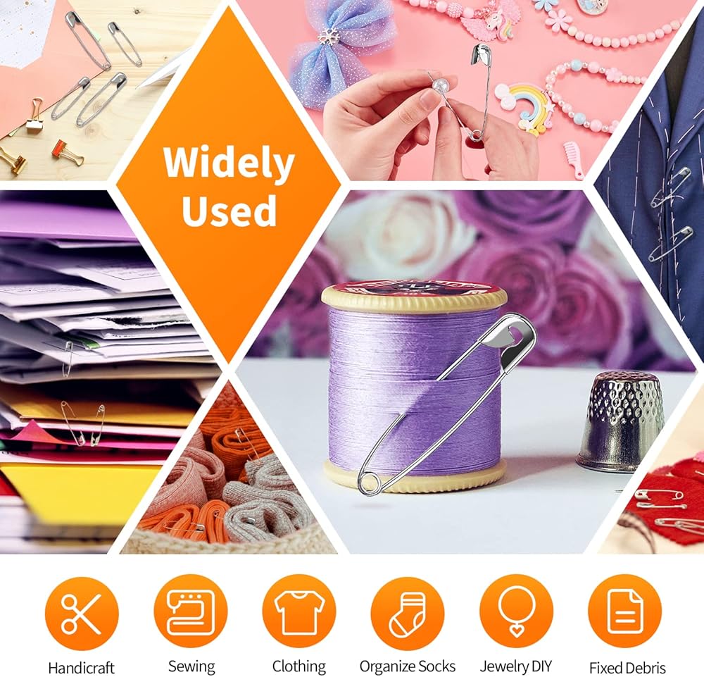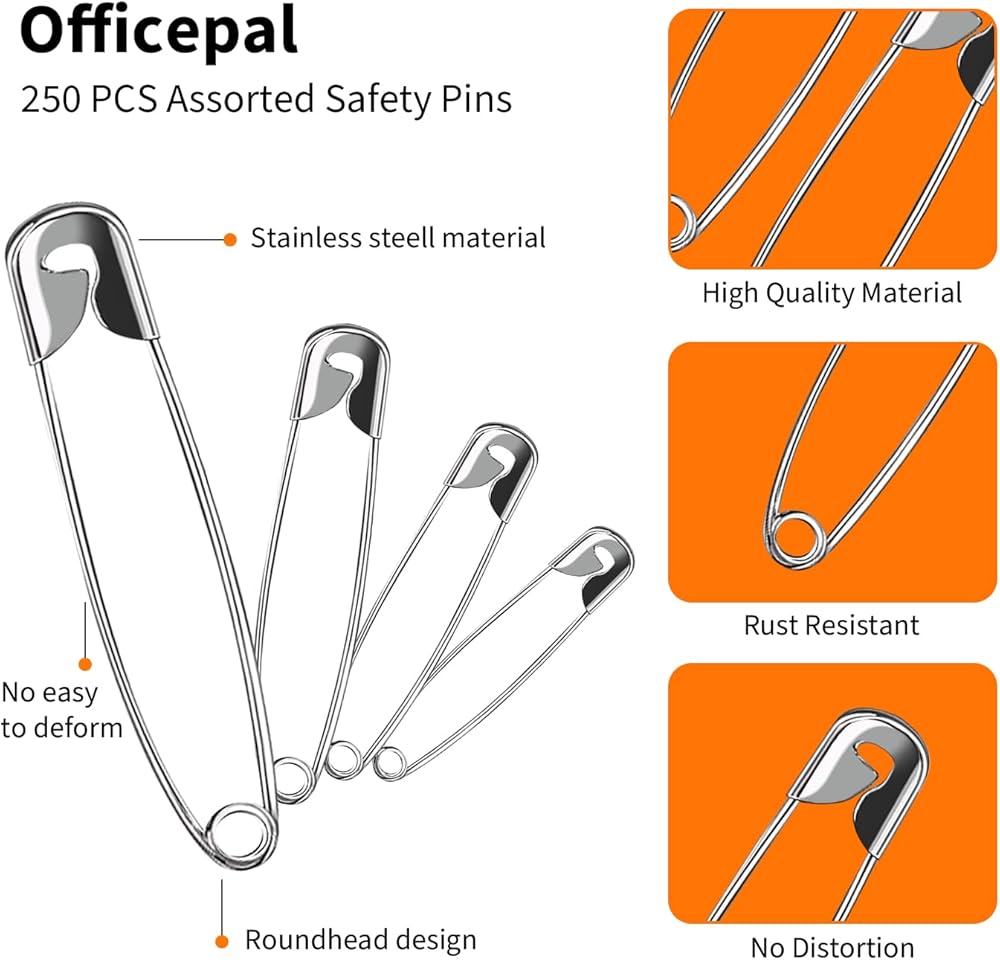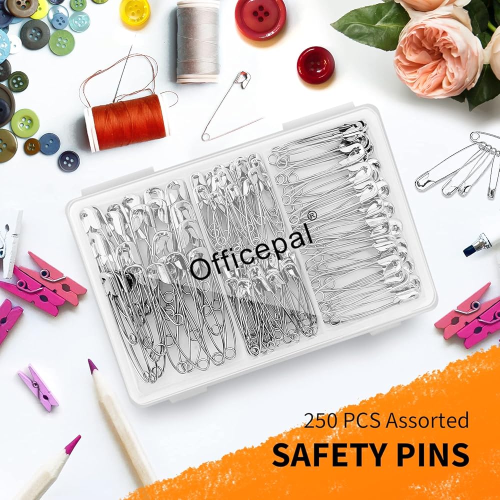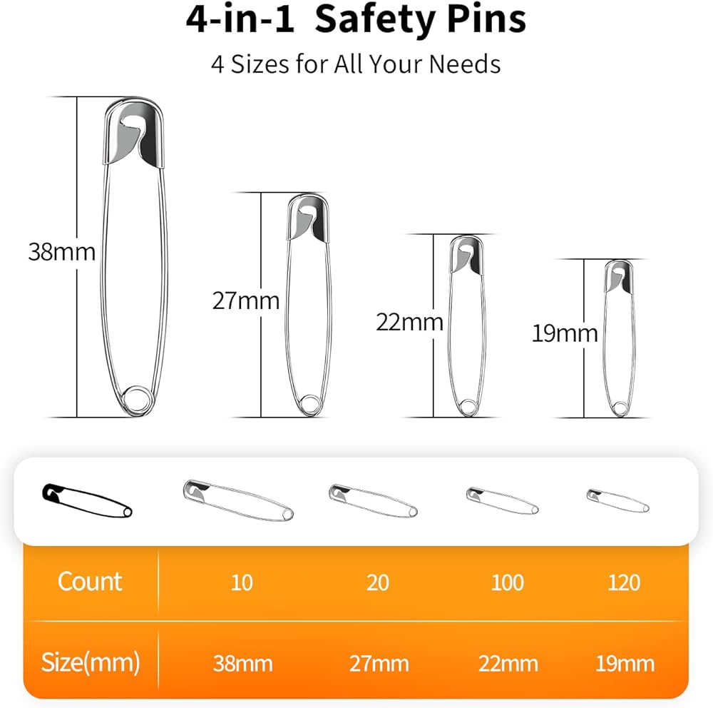 مجموعة دبابيس الأمان عالية الجودة بأربعة أحجام - عدد 250 - مجموعة فولاذية متينة مطلية بالنيكل مقاومة للصدأ - أفضل مجموعة إكسسوارات الخياطة لملابس الأطفال والحرف اليدوية والفنون (4 مقاسات في 1 رقم 001)