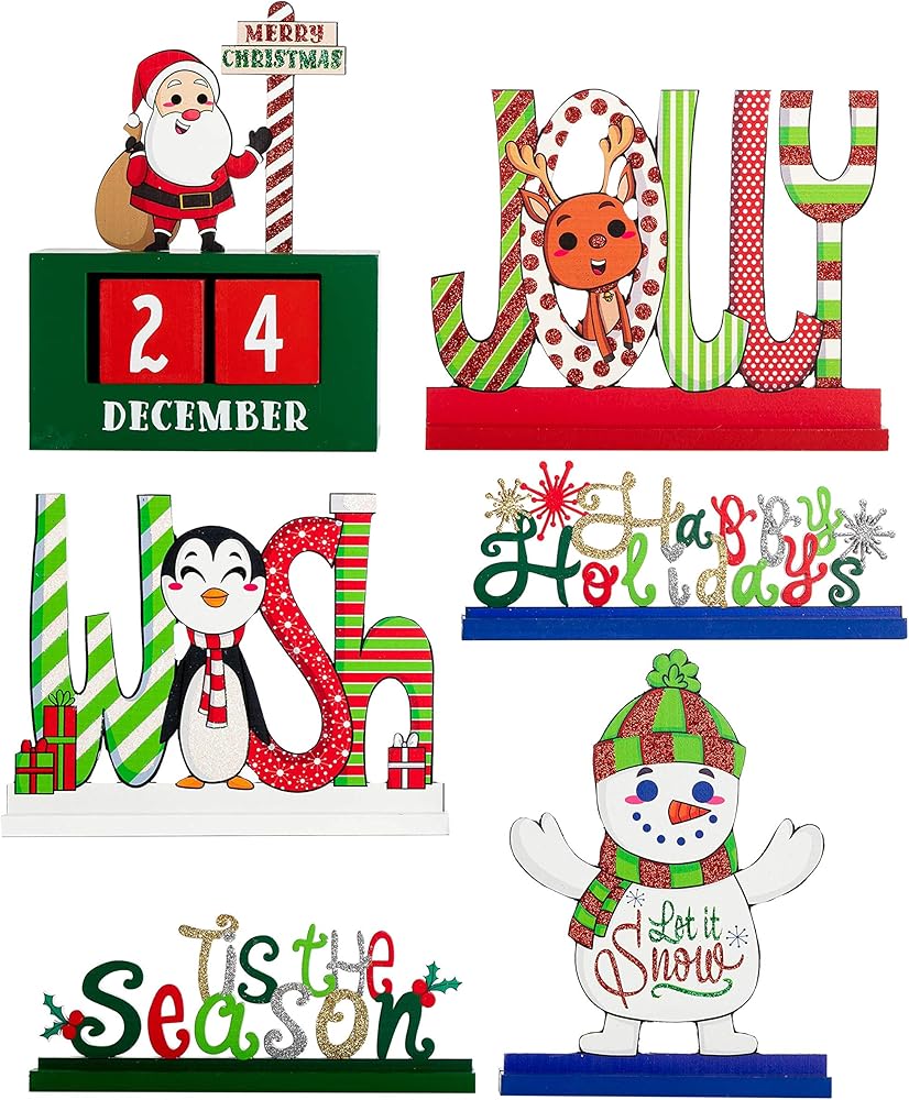6 عبوات من جوين، زينة خشبية للطاولة في الوسط لتزيين المكتب والمنزل والكريسماس