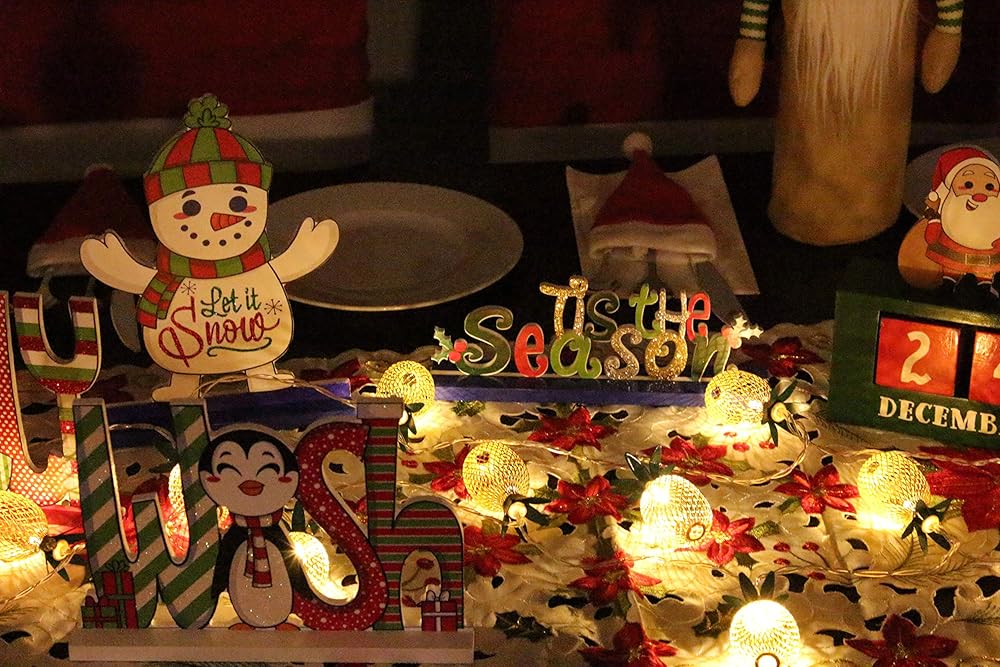 مثالية للديكور. هذه القطع الخشبية المركزية مثالية لحفلات الكريسماس وهدايا العطلات وديكور الكريسماس. إنها رائعة جدًا، وأنيقة، مع ألوان نابضة بالحياة، ولافتة للنظر، سيحبها الأطفال كثيرًا من النظرة الأولى. مثالية لطاولات حفلات العطلة والعروض المكتبية.