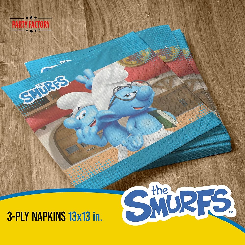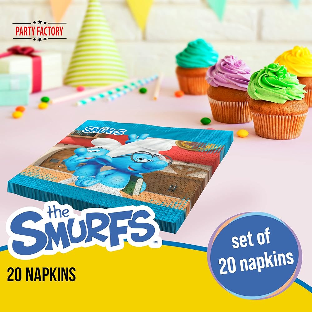 "أخبرني، من أين أنت؟" - "من مدينة السنافر، ها أنت ذا!" احتفل بحفلة رائعة مع الأصدقاء الأزرق وحوّل منزلك في وقت قصير إلى مدينة السنافر. للحصول على ديكور مثالي لعيد ميلاد الطفل أو حفلة ذات طابع خاص لمحبي الأبطال الأزرق من مدينة السنافر، هذه المناديل مثالية. معهم، لن يقف أي شيء على الإطلاق في طريق الديكور الرائع وحفلة ذات طابع ناجح. اجعل عيون طفلك في عيد ميلادك وضيوفه تتألق.