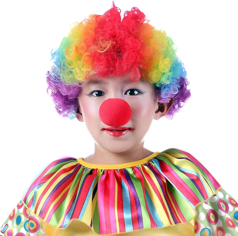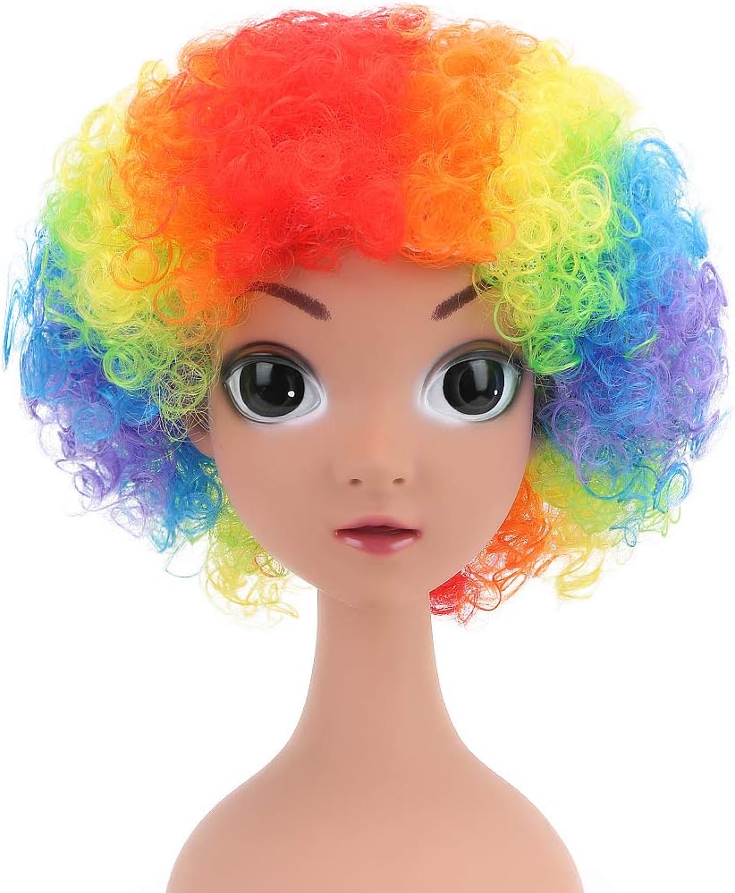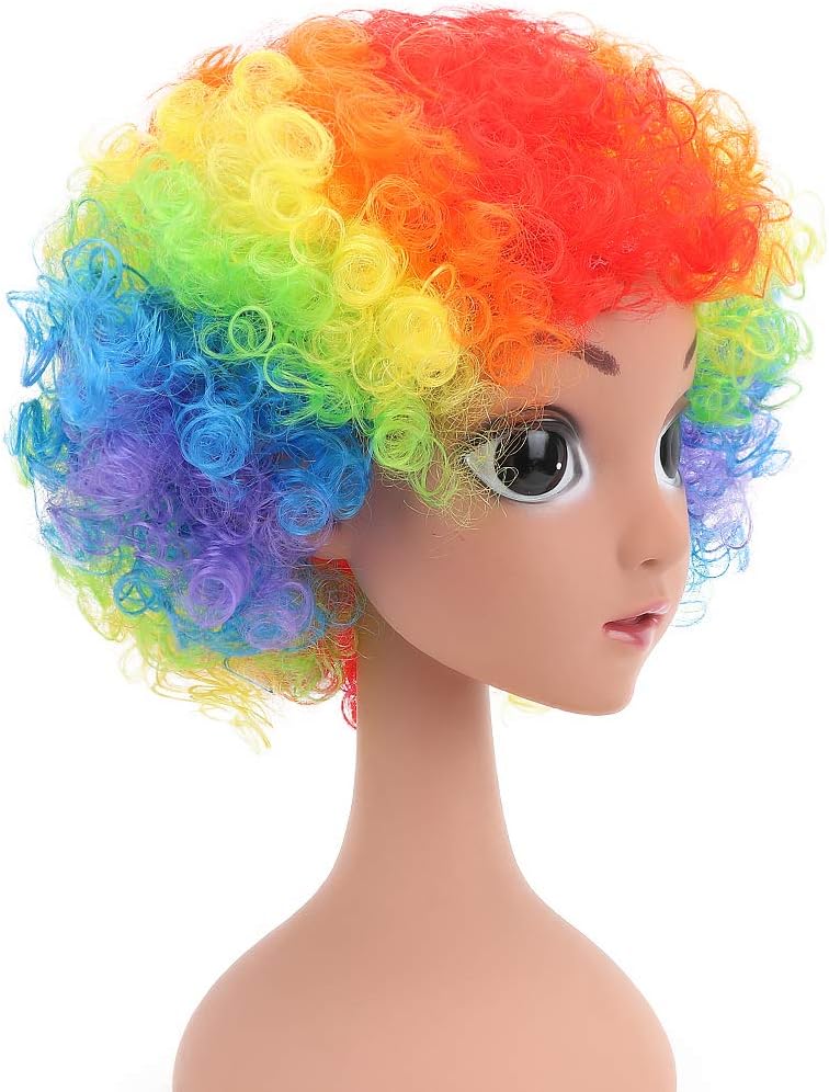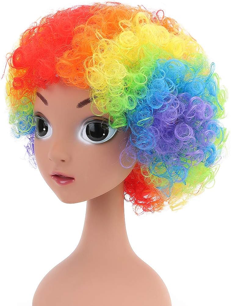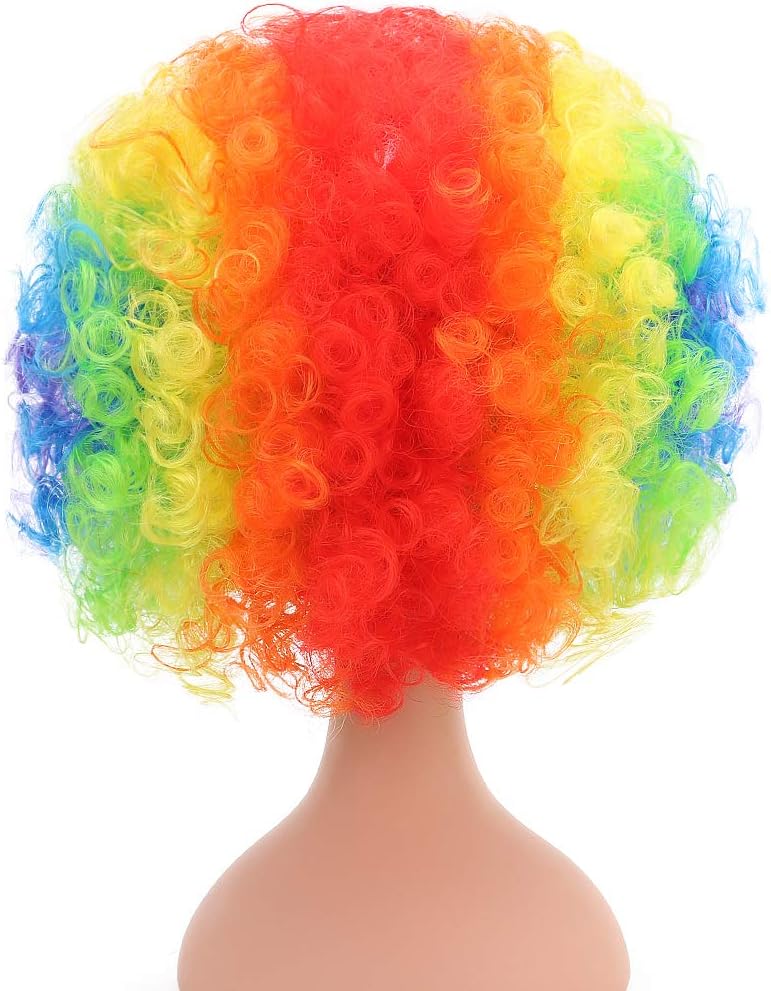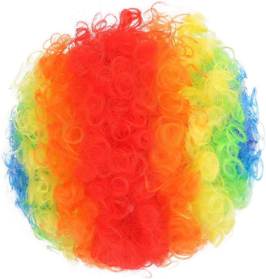 - Package: colorful afro wigs. Clown nose in the picture is not included.