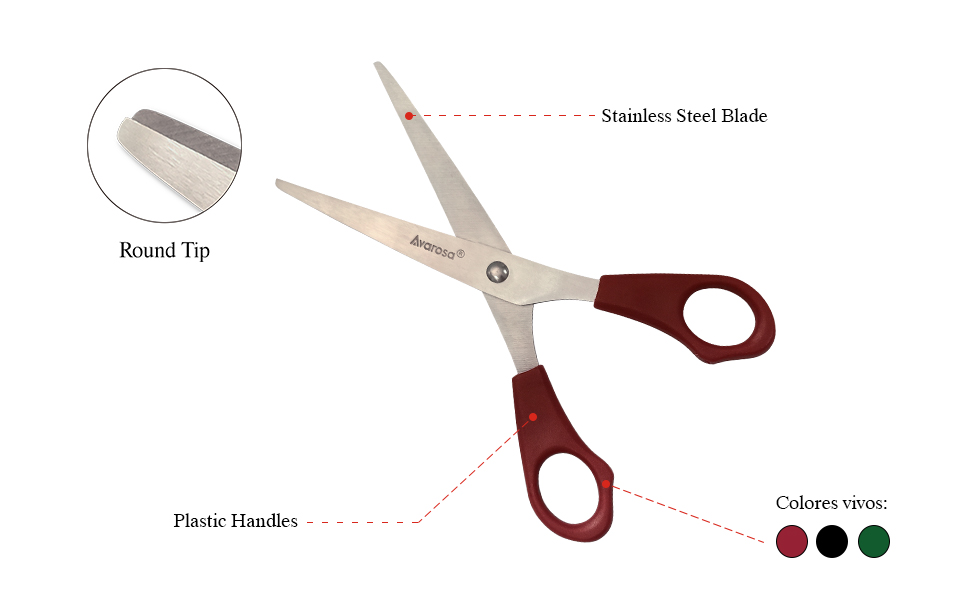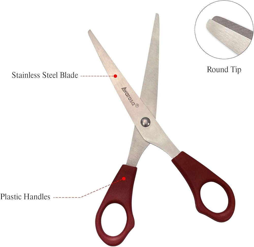 مقص بطرف مستدير للأطفال في الفصل الدراسي والمدرسة: متعدد الأغراض، الاستخدام العام. مثالية لتقطيع الورق وبطاقات الملصقات والصور والشريط ودفتر القصاصات والأعمال المنزلية وغيرها من المواد الحرفية المدرسية.
