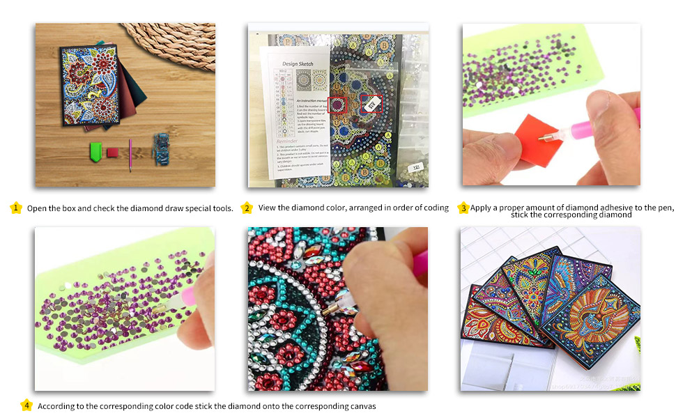 【مجموعة كاملة من اللوازم المدرسية 】مجموعة رسم للأطفال بأنماط ملونة. تحتوي كل مجموعة من كتب الرسم ذات الغلاف الصلب على 1 دفتر ملاحظات من القماش الشفاف المقاوم للماء وحامل رسم ماسي لمحبي الرسم الماسي، 1 قلم لاصق من حجر الراين، 1 طين لاصق و1 لوحة ماسية، مجموعة دفاتر رسم ماسية ذات شكل خاص مناسبة وعملية لمشاريعك اليدوية. نحن نقدم ضمان استعادة الأموال لمدة 24 شهرًا. وحتى لا تنفد منها، أضفنا 20% ألماسًا إضافيًا
