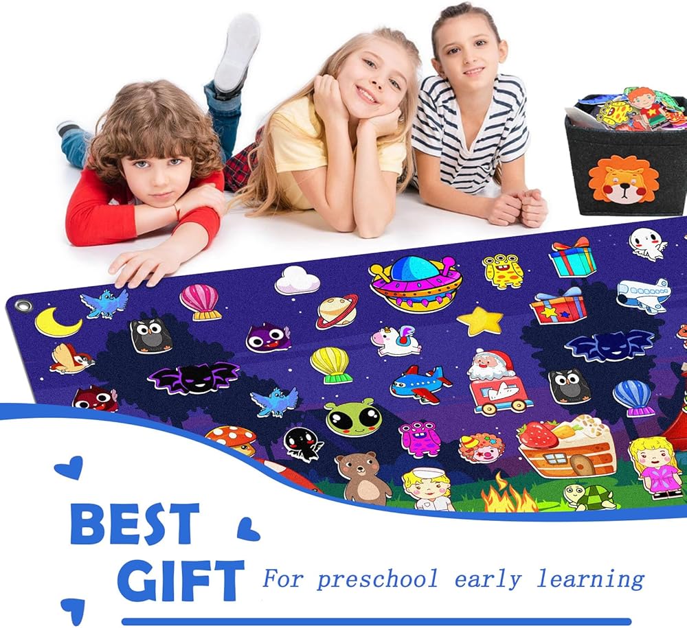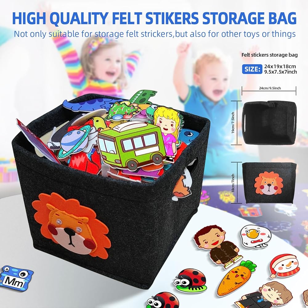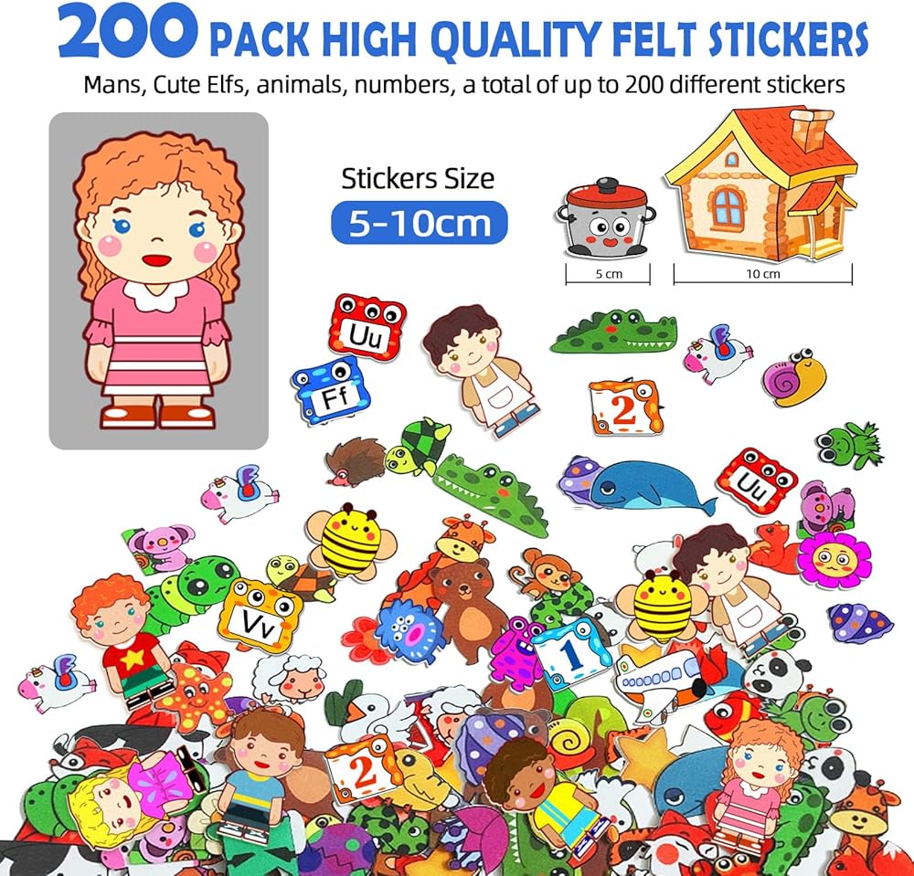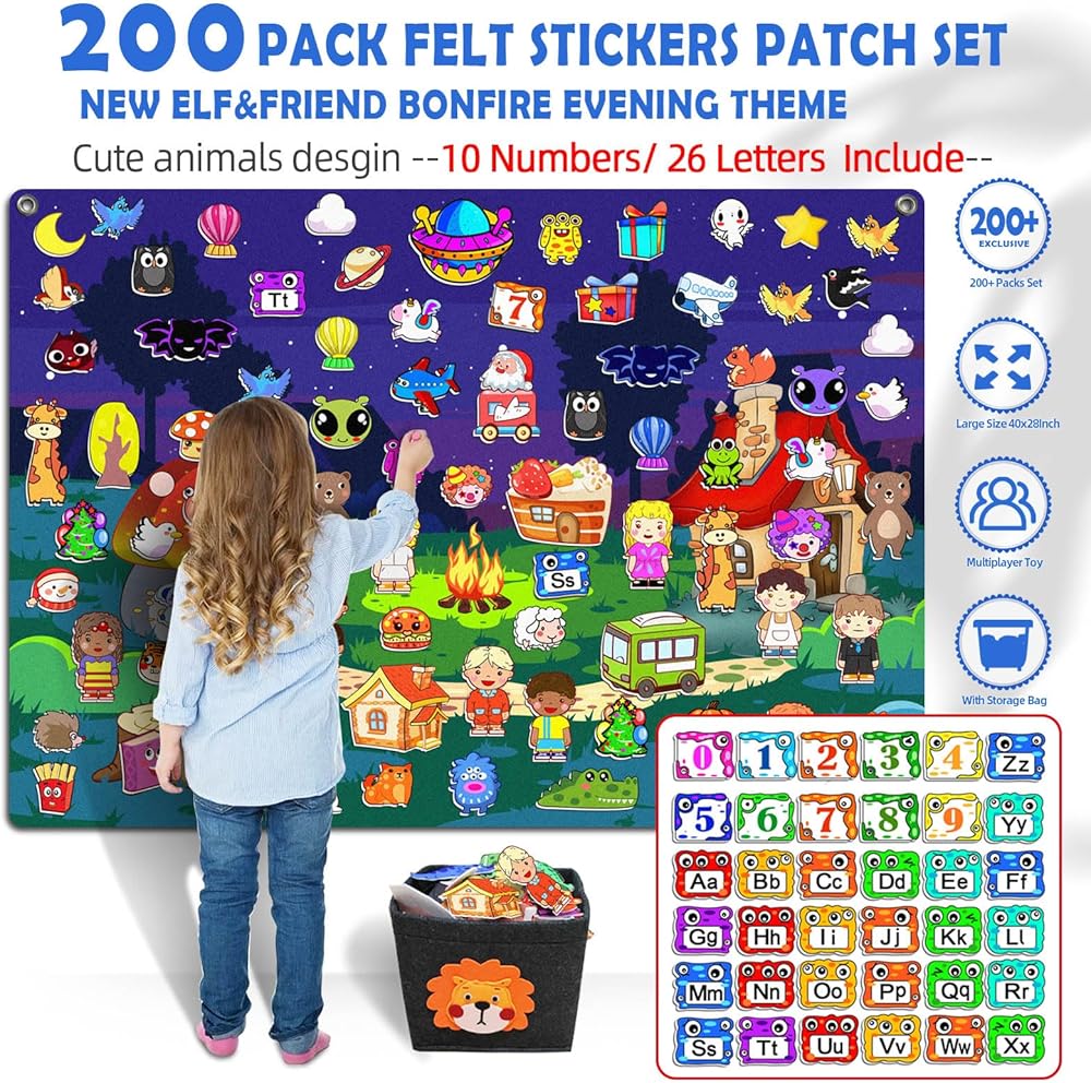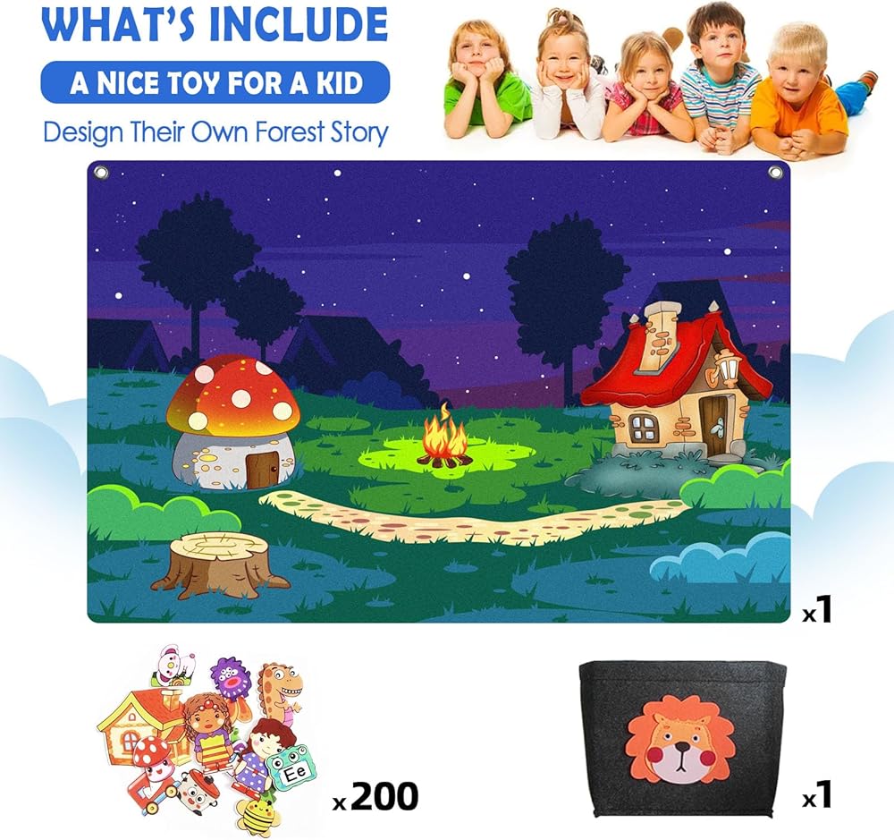 200 قطعة من لوحة القصة اللباد مع حقيبة تخزين لتعليم ما قبل المدرسة جدار الفانيلا مشغولة بحفلة النار تحت عنوان التعلم المبكر ألعاب اللعب التفاعلية هدية معلقة على الحائط للأطفال الصغار 40 × 28 بوصة