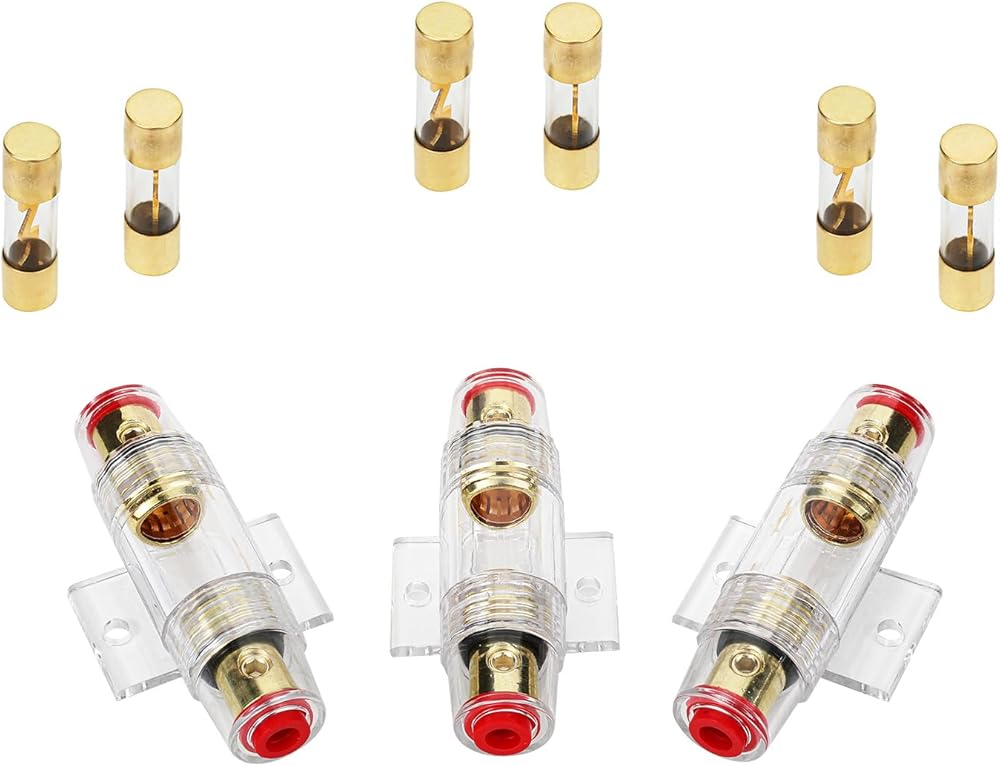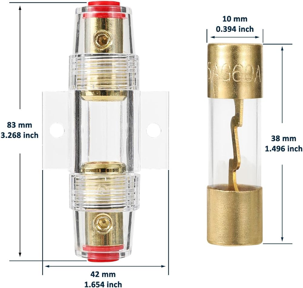 حامل ENLOZURE 4-10 Gauge AWG In-line AGU Fuse، قمة الهندسة الدقيقة لعشاق صوت السيارة. تم تصميم حامل المصهر المدمج المقاوم للماء والمطلي بالذهب بعناية فائقة، ويستوعب كابلات 4/6/8/10 AWG ويضمن الأداء الأمثل في صوت السيارة وأجهزة الإنذار ومكبرات الصوت والضواغط. السلامة تأخذ الأولوية مع قطع الطاقة التلقائي لمنع التيار الزائد، مما يجعلها لا غنى عنها لإعدادات العاكس ومضخم الصوت في السيارة.