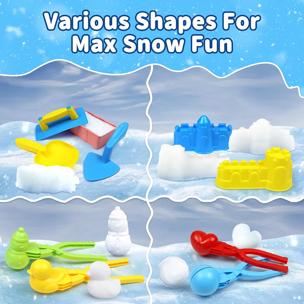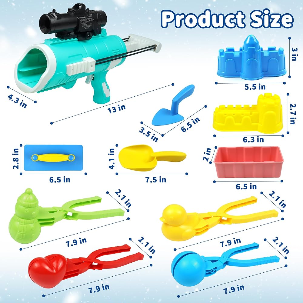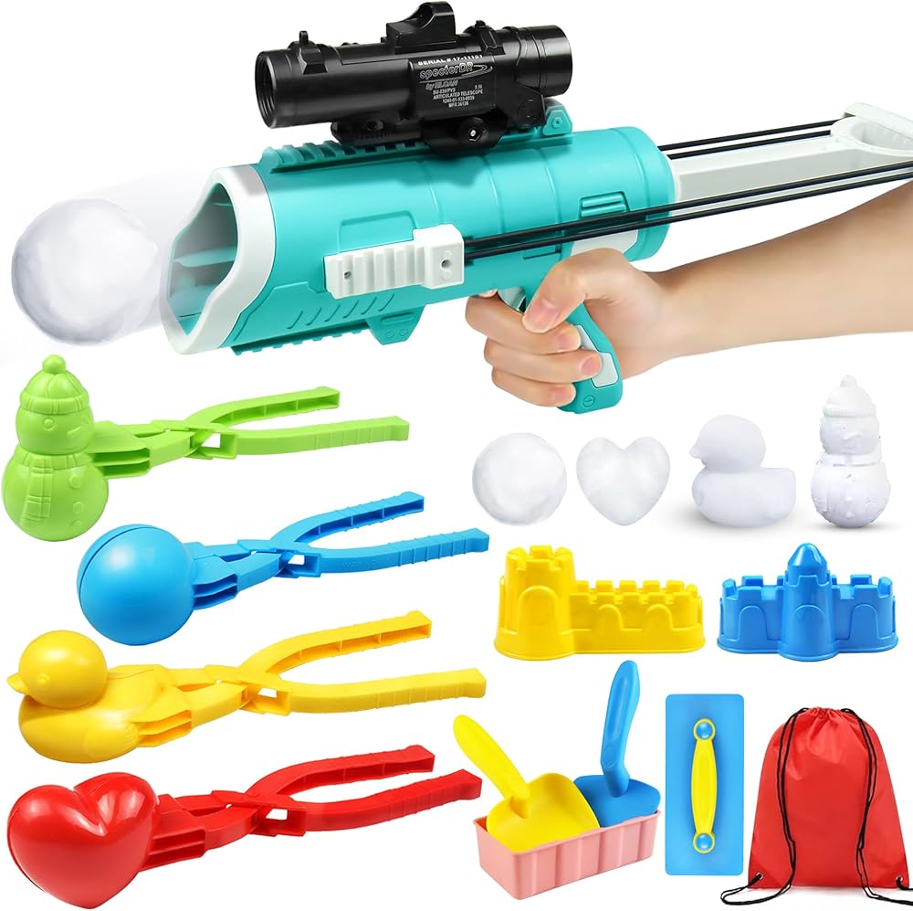 أفضل لعبة شتوية خارجية: مجموعة ألعاب الثلج المكونة من 12 قطعة تتضمن مسدس كرة ثلج، و4 مشابك ثلج (بطة/حب/رجل ثلج/كرة ثلج)، و1 قالب مكعبات ثلج، و2 قالب قلعة، و2 مجرفة ثلج، وملعقة واحدة، وحقيبة حمل. كل ذلك في حقيبة واحدة، سهلة الحمل، واستعد لمعركة كرة الثلج.