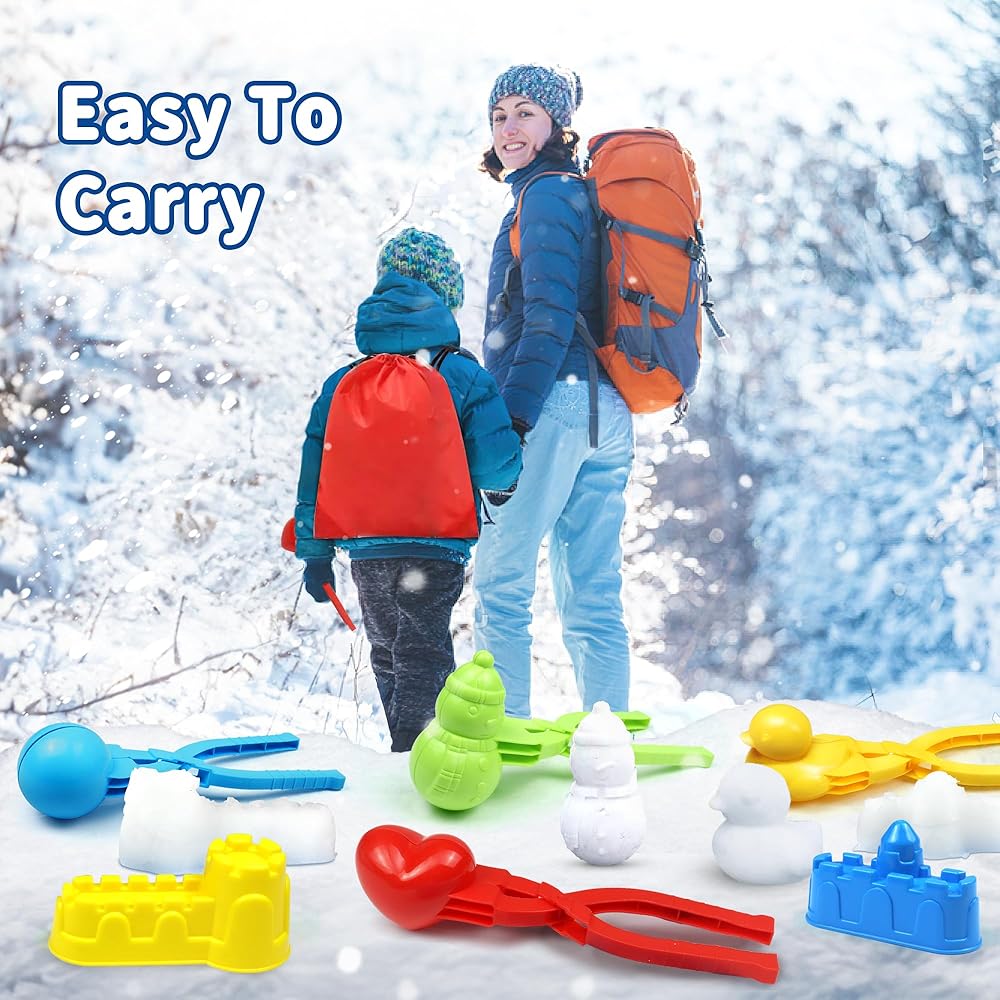 سهلة الحمل والتخزين: بالإضافة إلى حقيبة كتف برباط، أينما ذهبت، يمكنك وضع ألعاب الثلج هذه في حقيبتك لتخزين جميع قوالب الثلج الخاصة بك في وقت واحد دون القلق بشأن الفوضى. فقط استمتع بمتعة الشتاء الحقيقية السعيدة التي لا نهاية لها مع عائلتك.