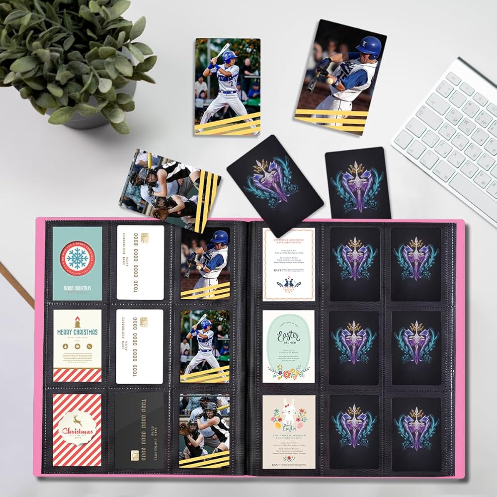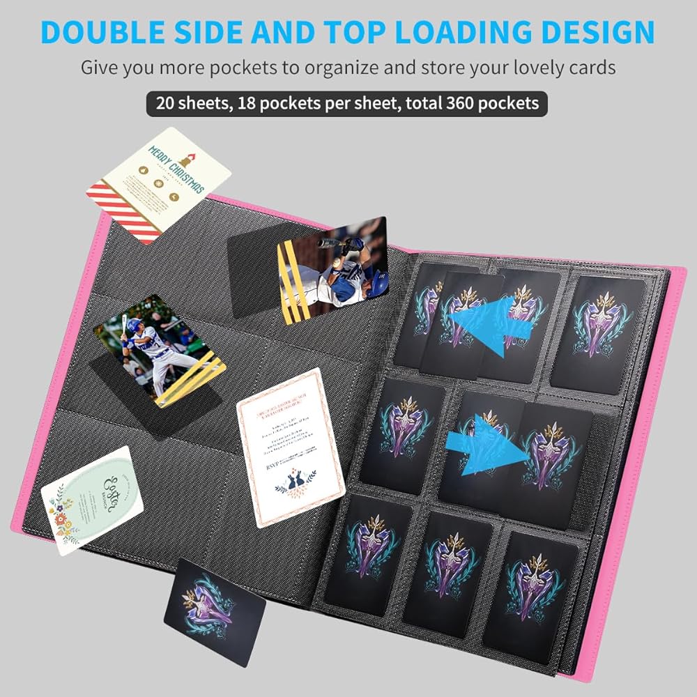 • ❤️【هدية مثالية】 - تصميم حافظات كتب البطاقات الحديثة والبسيطة والنحيفة. إنه خفيف الوزن، وليس ضخمًا جدًا، مما يسمح لك بتخزين المزيد في مساحة أقل من غلاف TCG العادي. نوع لطيف يمكن حمله من ألبوم بطاقات التداول لبطاقات التداول، وبطاقات البوكيمون، وبطاقات البيسبول، وMTG، وTCG، وYugioh، والرياضة، وبطاقات الألعاب، وبطاقات العمل، وبطاقات الصور... غلاف مثالي لأطفالك وطلابك