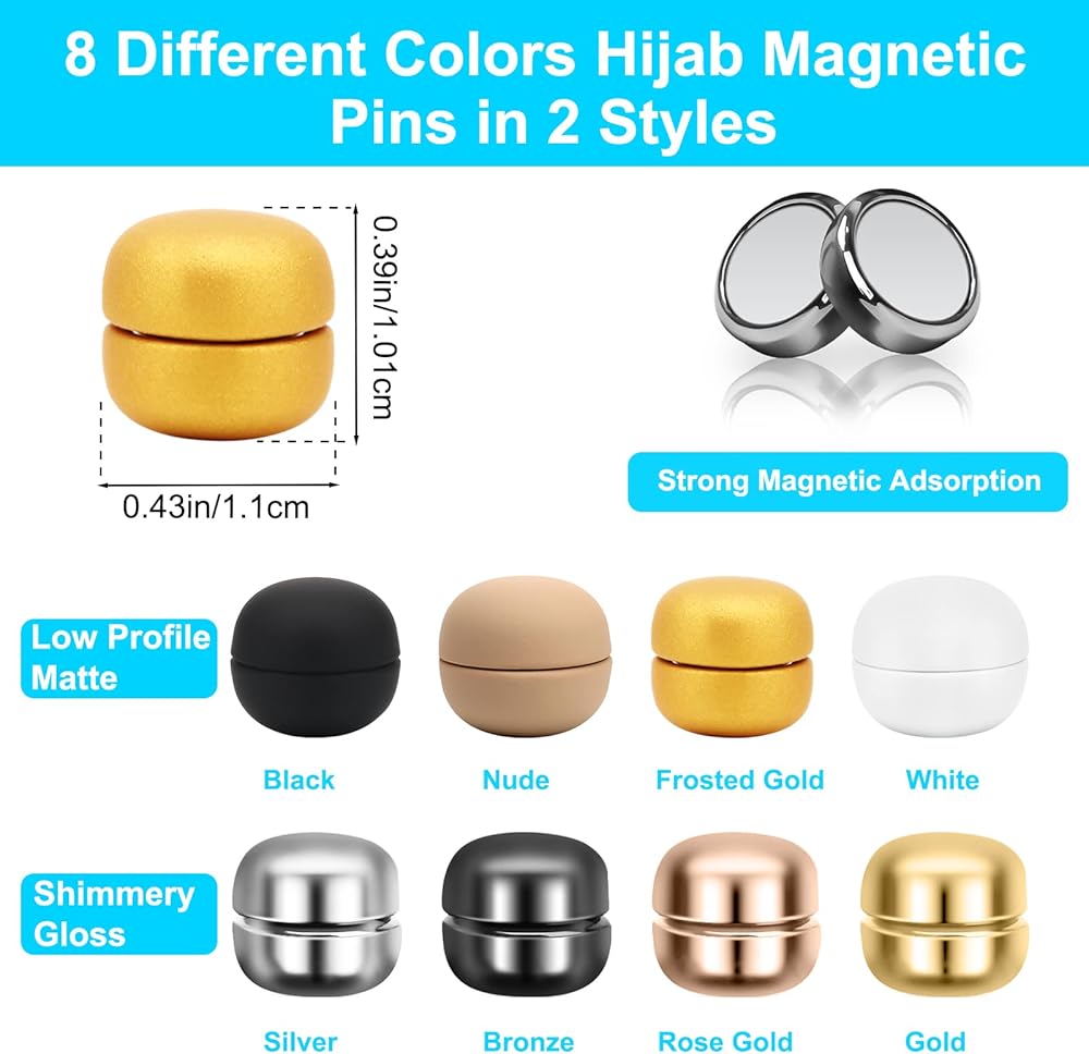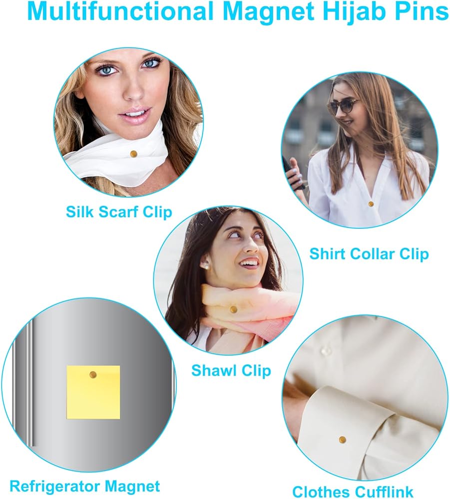 ☀ دبابيس مغناطيسية فائقة: دبابيس مغناطيسية للحجاب ذات امتصاص مغناطيسي فائق، ليس من السهل تحريكها وسقوطها، وتساعدك على تثبيت الحجاب بأمان طوال اليوم، وتمنع الطوق وأشرطة الكتف من السقوط، مريحة وآمنة.
