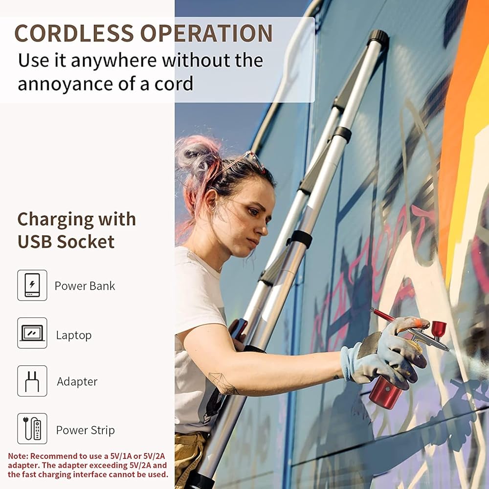 • 🍁【سهلة الاستخدام】هذه الفرشاة الهوائية أو البخاخة اللاسلكية - مجموعة كريم الأساس لا تحتوي على كابل ملفوف! يمكنك استخدام هذه البخاخة اللاسلكية في أي مكان تقريبًا. يمكن لبطارية ضاغط البخاخة أن تعمل بشكل مستمر لأكثر من 60 دقيقة، وتدعم الشحن باستخدام مقابس USB، مثل حزمة الطاقة والمحول والكمبيوتر المحمول ولوحة الطاقة. ملحوظة: يوصى باستخدام محولات 5 فولت/1 أمبير أو 5 فولت/2 أمبير. لا تستخدم محولات تتجاوز 5 فولت 2 أمبير.