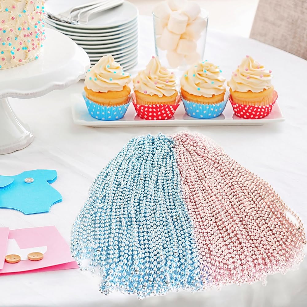 GiftExpress 72 حزمة قلادة الخرز ماردي غرا، الطفل الوردي والأزرق الطفل يكشف عن جنس الطفل لحفلة إعلان استحمام الطفل