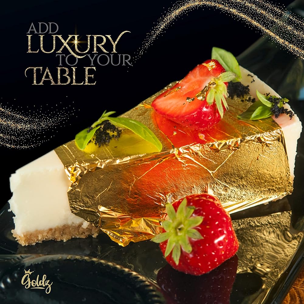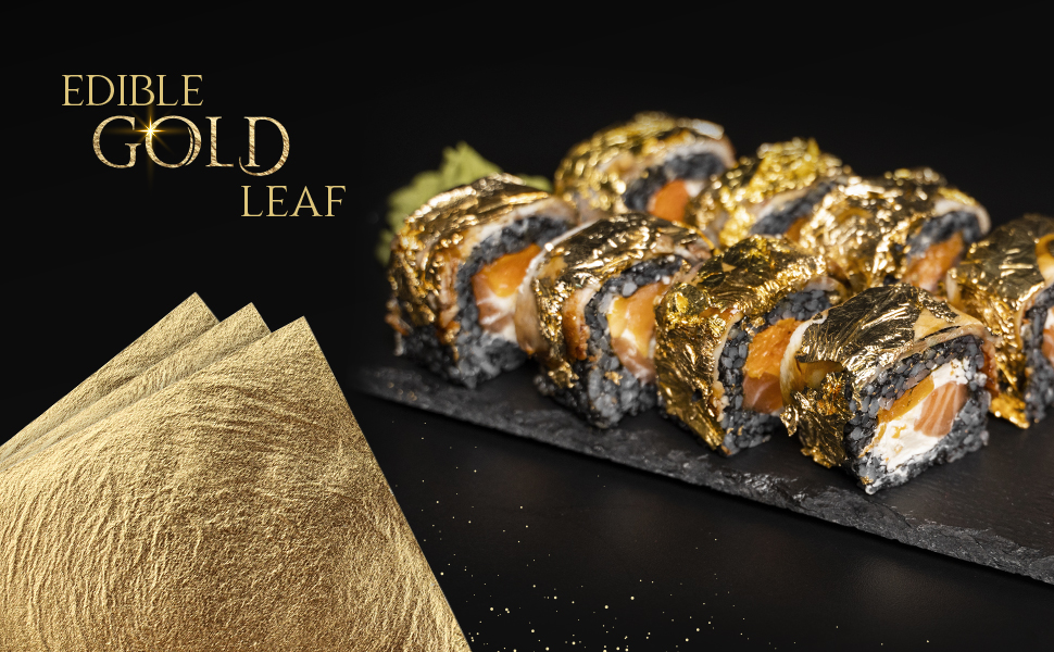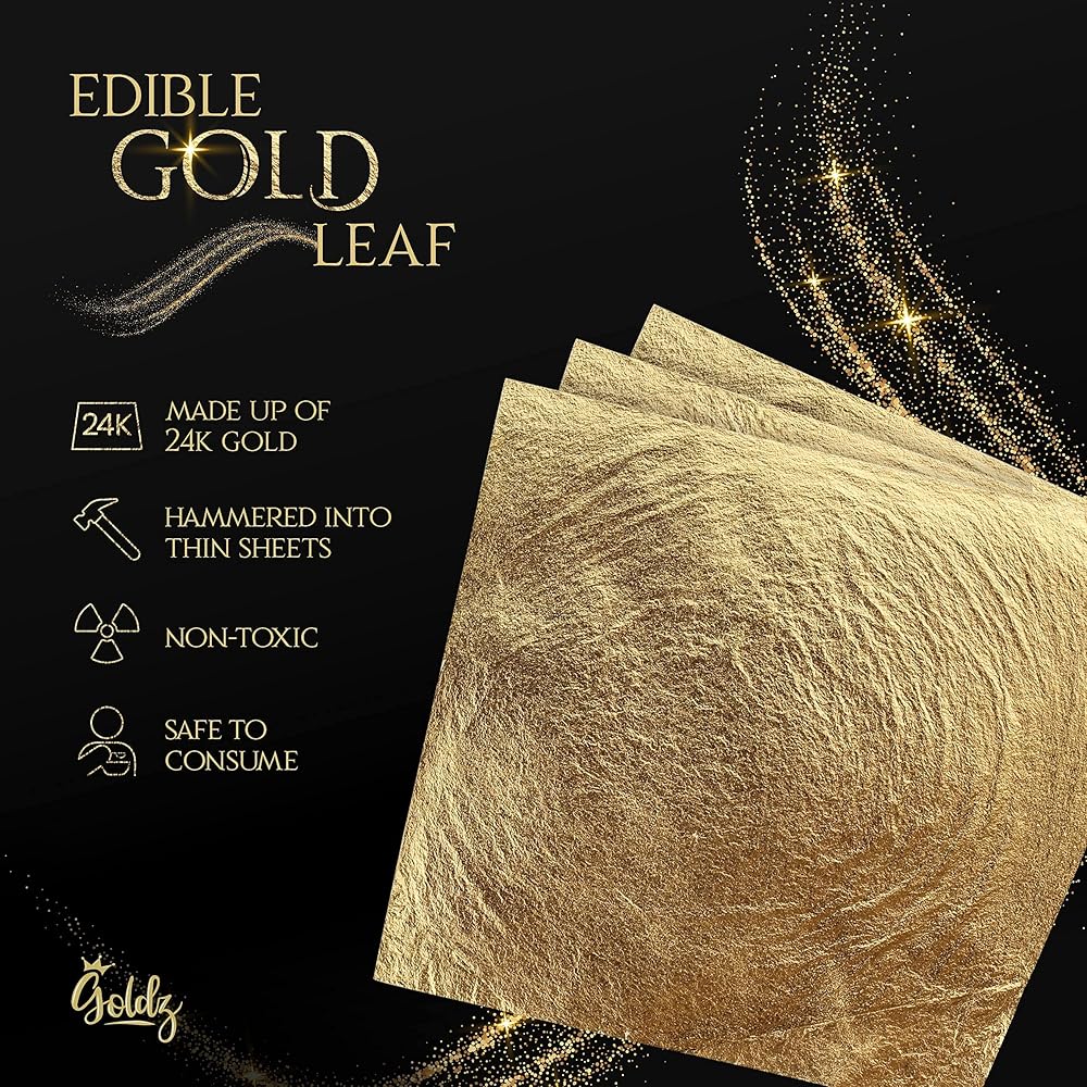 زينة للطعام والشراب - أوراق ذهبية 24 قيراط صالحة للأكل - أوراق ذهبية صالحة للأكل، لذلك يمكن استخدامها على نطاق واسع كديكور للطعام. يمكنك تزيين المخبوزات والكعك والحلوى والمعجنات والبسكويت والكب كيك بأوراق ذهبية، وستضيف لمسة من الفخامة إلى طاولة الطعام الخاصة بك.