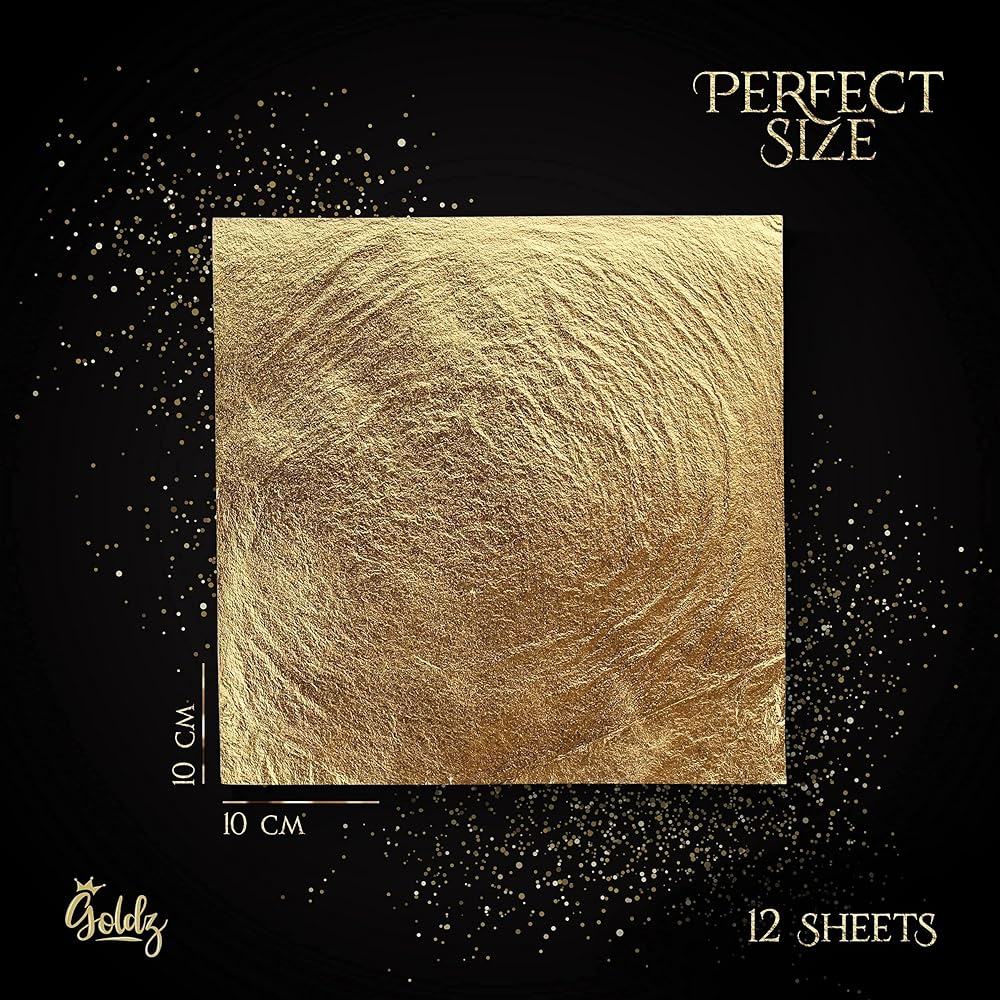 محتويات العبوة: ملاءات فاخرة عالية الجودة بحجم كبير 24 قيراط - 12 ورقة - مقاس كبير 3.93 × 3.93 انش (10 سم × 10 سم) لكل ورقة.