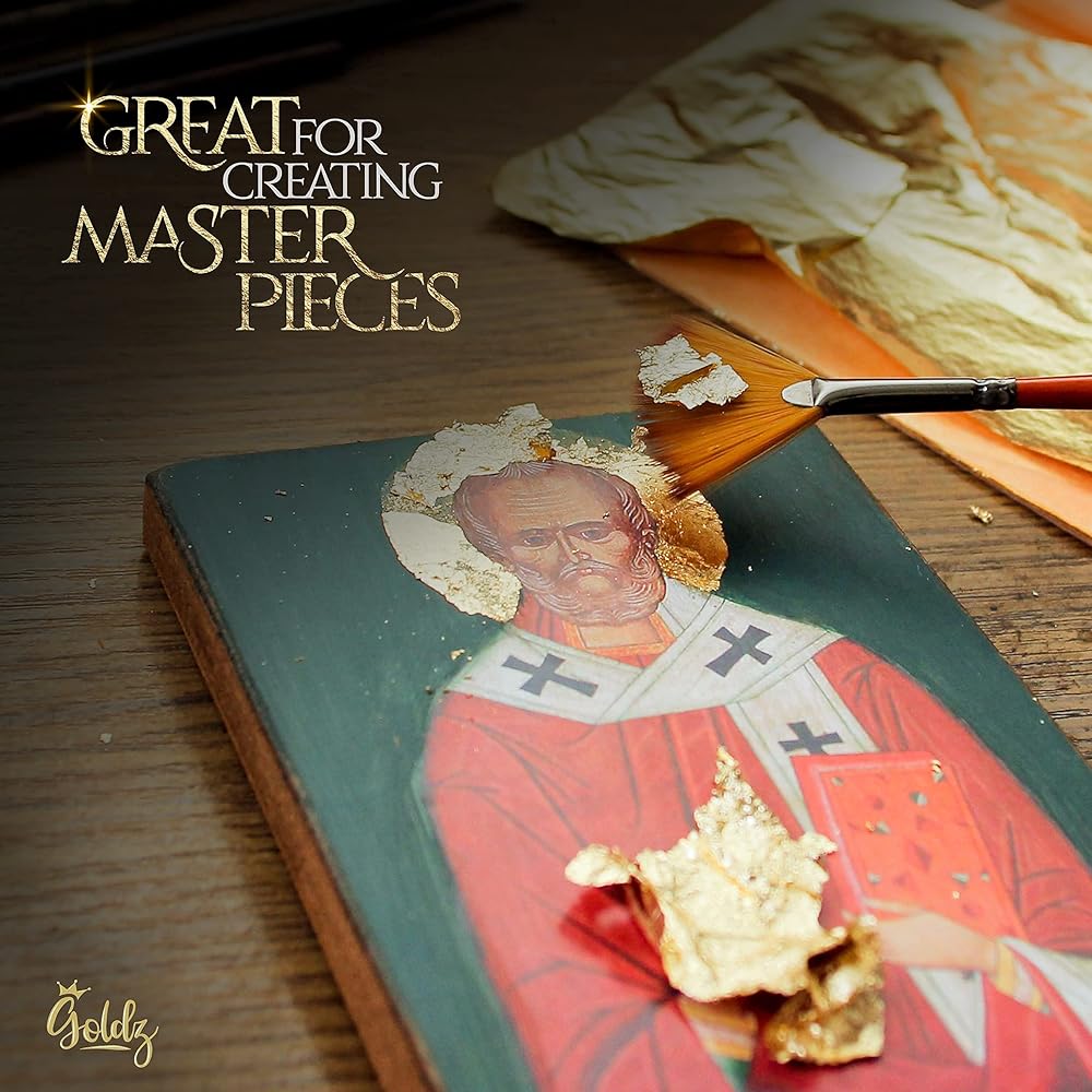 ديكور فني - يمكن استخدام أوراق الذهب اللامعة والرائعة جولدز في الأعمال الفنية والحرفية التي تتطلب ملمسًا ذهبيًا فاخرًا: النحت والسيراميك والطلاء والسقف والفخار والهدايا المصنوعة يدويًا والأعمال اليدوية وتصميم الأثاث والإكسسوارات الأنيقة مثل الخواتم والقلادات والأساور والتيجان.