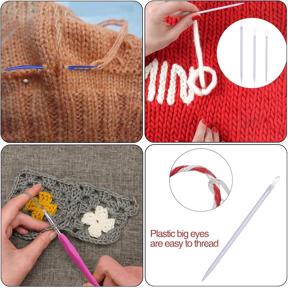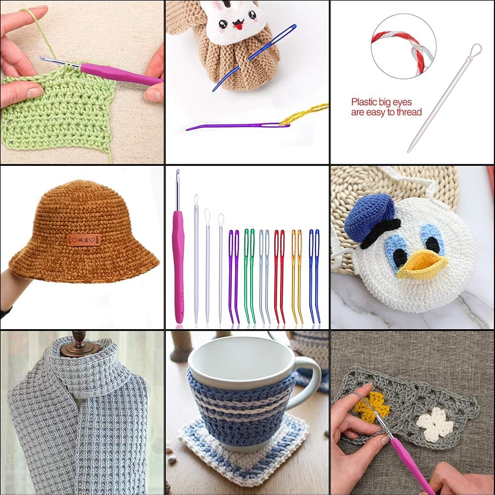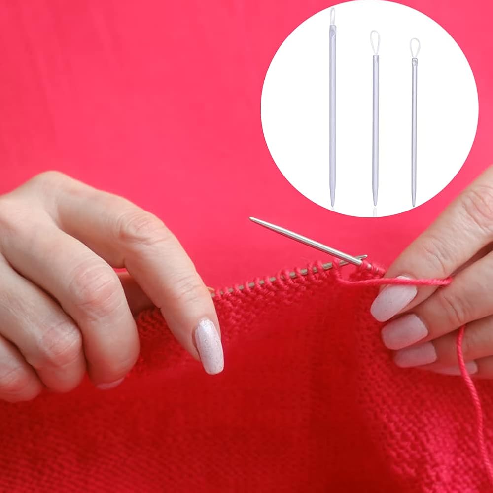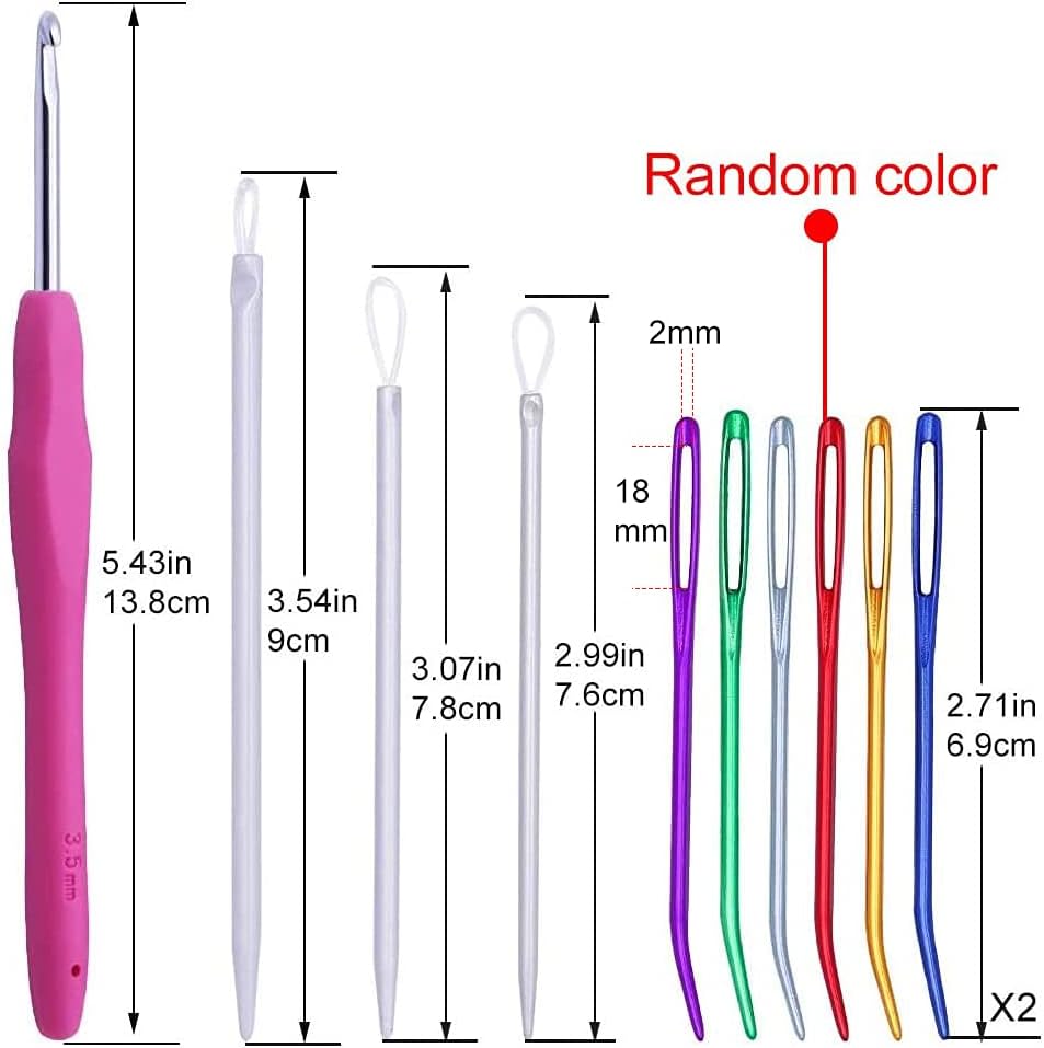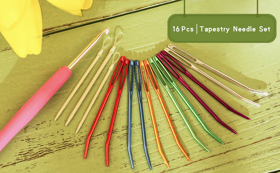 ✅ مجموعة إبر نسيج 16 قطعة - 12 إبرة عين معدنية غير حادة، 3 قطع من إبر الصوف و 1 قطعة من إبر الكروشيه ذات المقبض المريح (الحجم: 3.5 مم).
