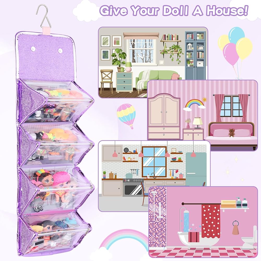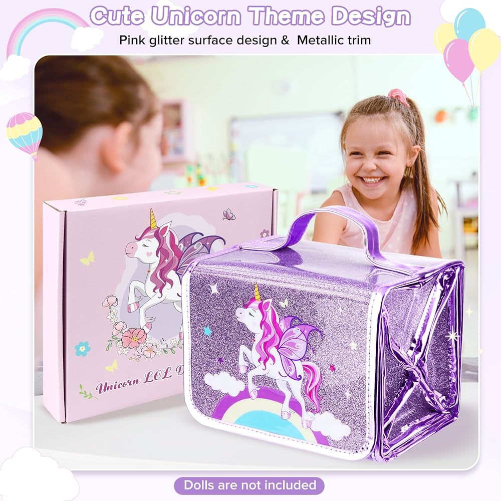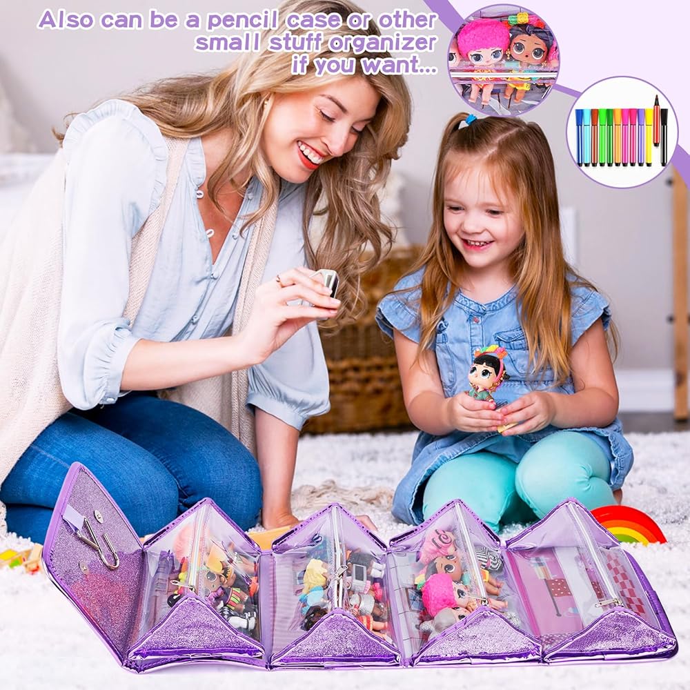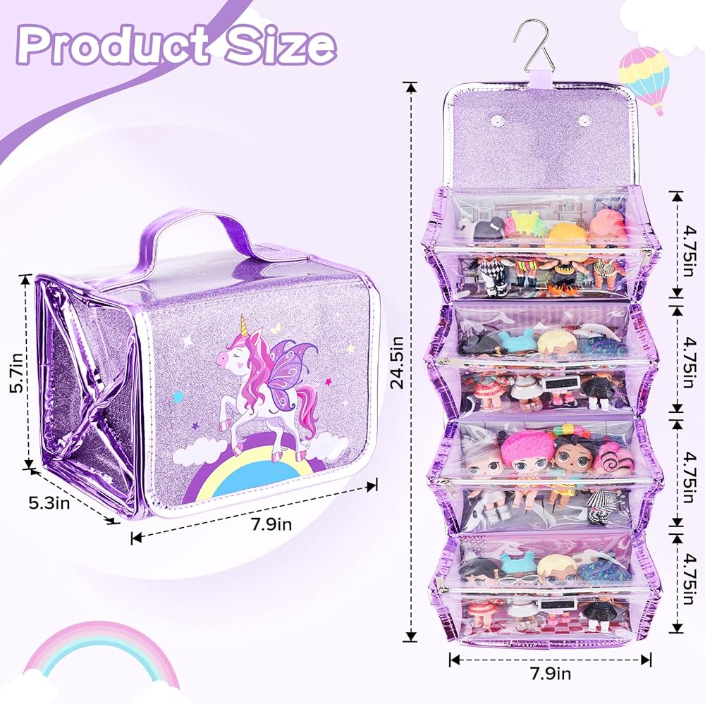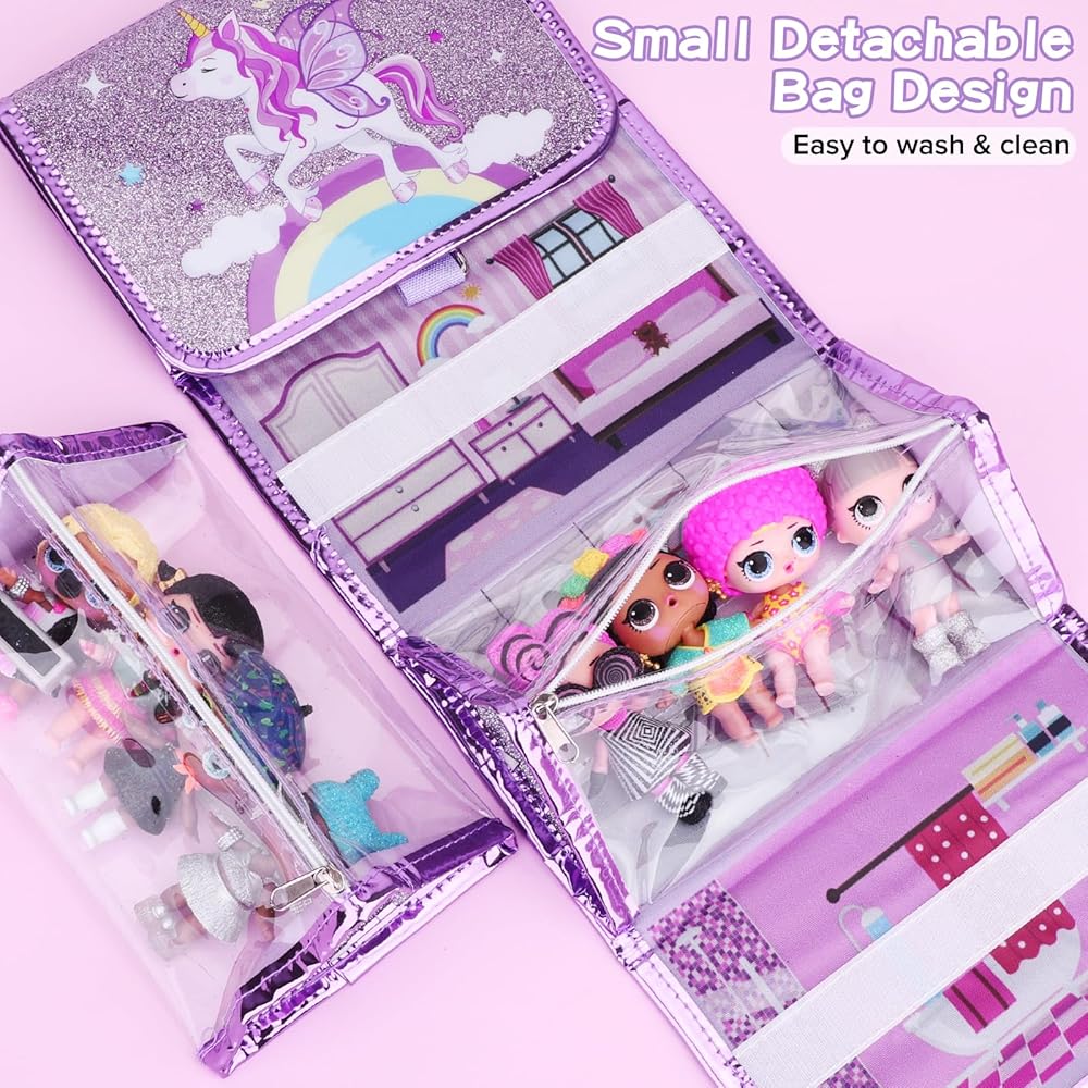 🦄تنظيم مريح - تم تصميم حقيبة تخزين دمية يونيكورن الخاصة بنا لمساعدتك في الحفاظ على دمى وإكسسواراتك منظمة بشكل أنيق. مع 4 حافظات عرض قابلة للفصل، يمكنك بسهولة ترتيب الدمى الخاصة بك وعرضها بطريقة أنيقة. إنها ليست مجرد حقيبة. إنه منزل للدمى المفضلة لديك!