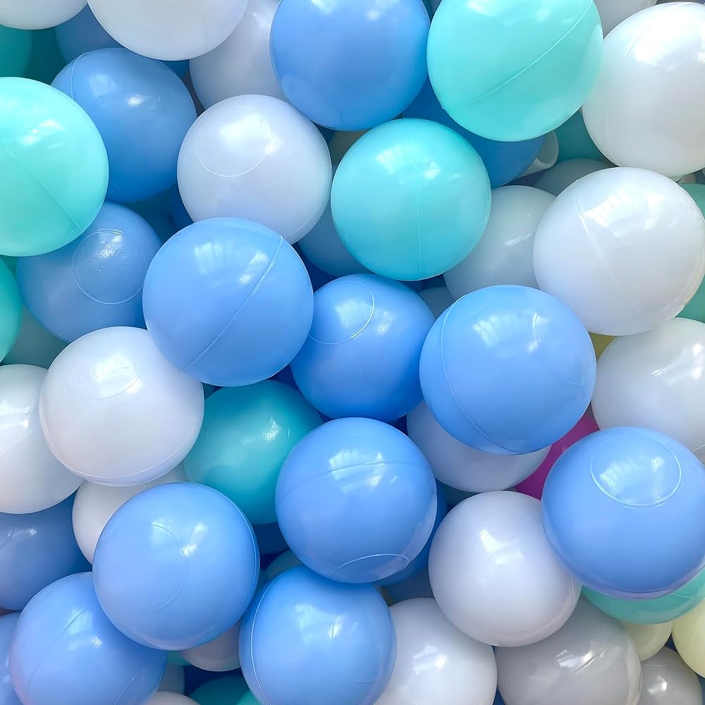 حواف ناعمة - كرات كروية مصقولة توربينية على حافة الكرة للحصول على سطح نظيف وناعم، واللعب بحرية في حمام سباحة كرات الأطفال والحفاظ على بشرة طفلك الحساسة من التقطيع، الكرة الناعمة مقاومة لمرونة الضغط العالي، والتي يمكن أن منع سحق. يمكنها حتى أن تتحمل وزن البالغين، لذا لا تقلق بشأن تعرضها للسحق. الجودة موثوقة، ويمكن إعادة استخدام كرة الحفرة