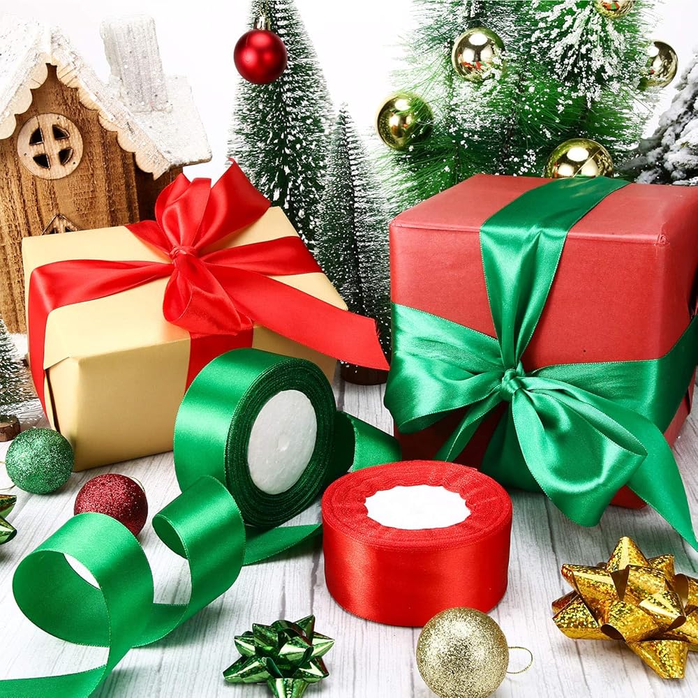 2 لفات من شرائط الساتان لعيد الميلاد