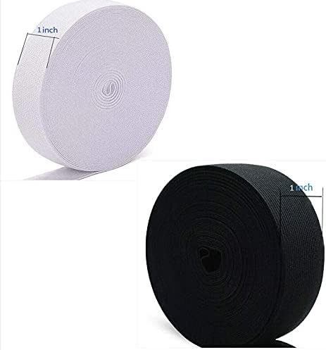 viaili، 11 ياردة 1 بوصة أربطة مرنة عالية المرونة للخياطة، بكرتان، 5.5 ياردة (أسود وأبيض، 1 بوصة)