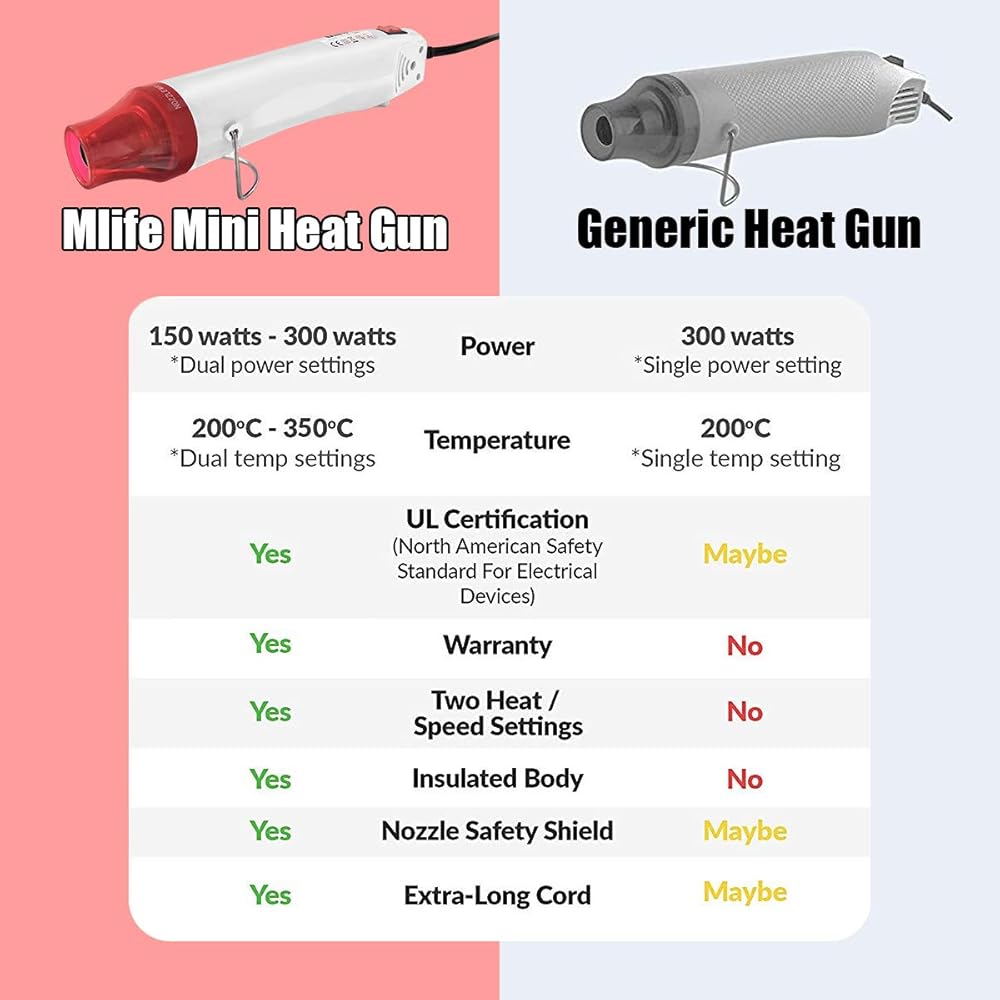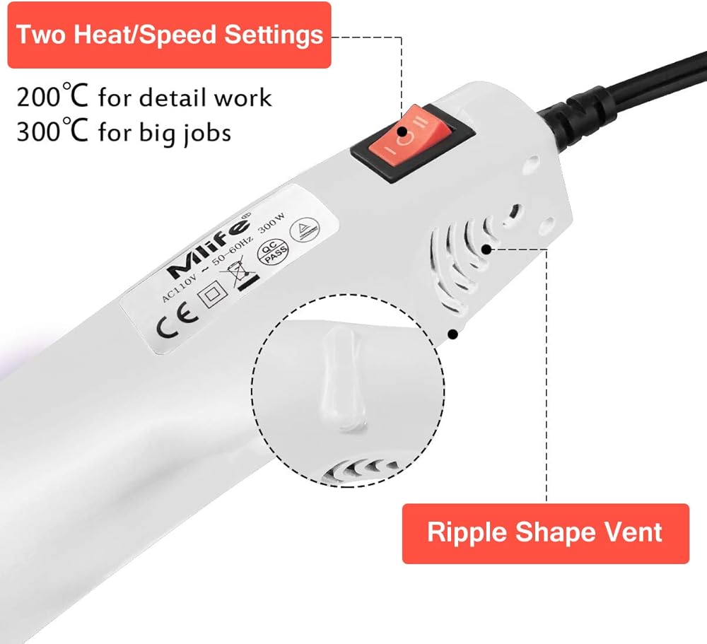 المسدس الحراري بهلوان الإيبوكسي Mlife مزود بإعدادين لدرجة الحرارة لتحقيق أقصى قدر من التنوع. حرارة عالية (300 درجة مئوية/572 درجة فهرنهايت) للمهام الكبيرة. حرارة منخفضة (200 درجة مئوية/392 درجة فهرنهايت) للأعمال التفصيلية. جميعها معبأة في جسم مدمج معزول للاستخدام المريح لفترة طويلة، مسدس الحرارة Mlife مثالي لمجموعة متنوعة من المشاريع الحرفية مثل صنع الأكواب اللامعة من الإيبوكسي، والنقش، ولف الانكماش، وتجفيف الطلاء والورنيش وإزالة الطلاء، بالإضافة إلى العديد من المشاريع الإلكترونية. !