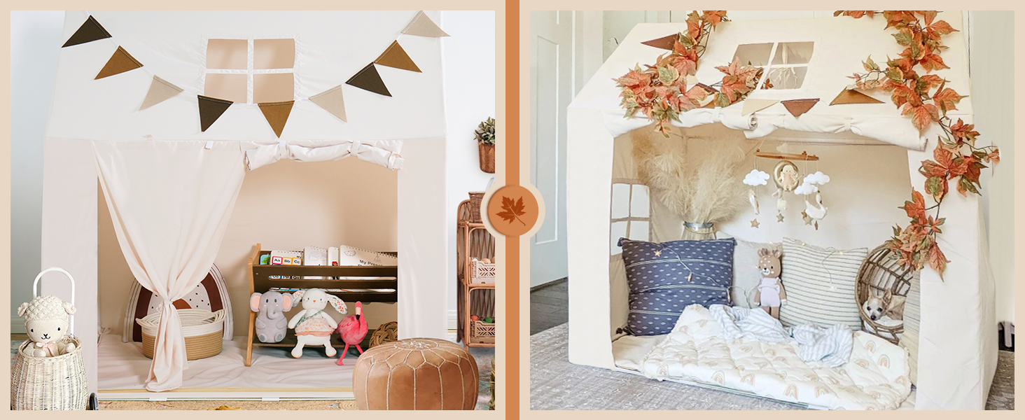 تصميم جميل وممتع: تتميز خيمة الأطفال لدينا بتصميم جذاب بصريًا ومصنوع بعناية. مع بابين دوارين يمكن فتحهما بسهولة، توفر الخيمة مدخلاً مريحًا. لا يعزز الهيكل الثلاثي جمال الخيمة فحسب، بل يضيف المتانة أيضًا. تساهم الألوان المحايدة للخيمة والأقمشة المنسوجة في إضفاء لمسة جمالية راقية وراقية، مما يجعلها هدية مثالية للأطفال.
