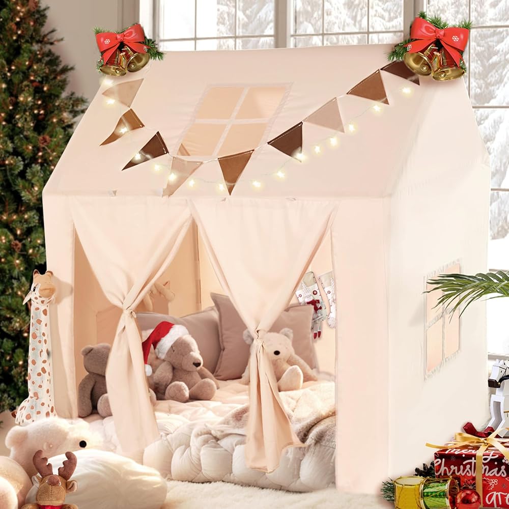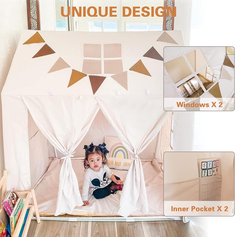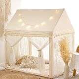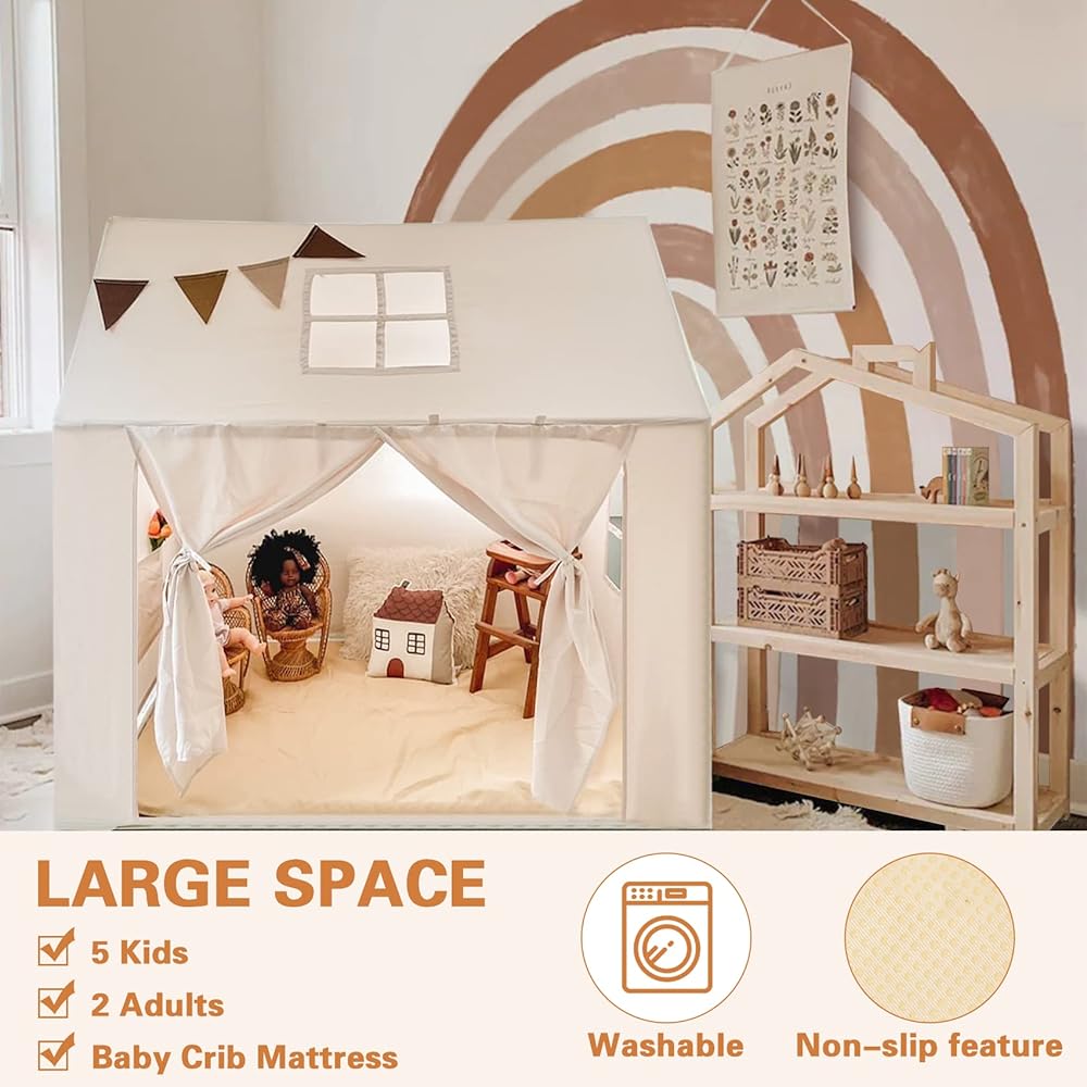 خيمة لعب للأطفال، بيت لعب كبير للأطفال مع بساط، ضوء وراية، خيمة بوهيمية مع نافذة علوية، سهلة الغسل، خيمة لعب داخلية وخارجية للأطفال، لون عاجي، 52 × 35 × 52