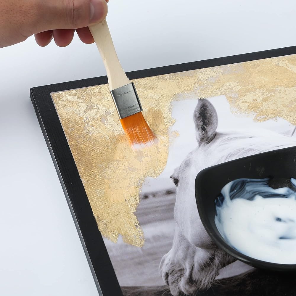 [ USE OF GLUE ]: Mix well with 10% - 20% water, stir evenly, spread the glue with a brush, after 1 hour the bronzing glue will dry and the stickiness is strong, you can paste the metal foil
