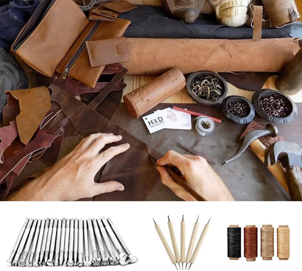 【مجموعة أدوات جلدية احترافية وشاملة】- تتضمن مجموعة أدوات الحرف الجلدية المكونة من 366 قطعة مجموعة واسعة من الأدوات عالية الجودة الضرورية لأي مشروع صناعة جلدية. سواء كنت محترفًا متمرسًا أو مبتدئًا للتو، فإن مجموعتنا تحتوي على كل ما تحتاجه لخياطة الجلد أو القماش أو القماش أو الدنيم أو القماش المشمع أو الورق أو غيرها من المواد.