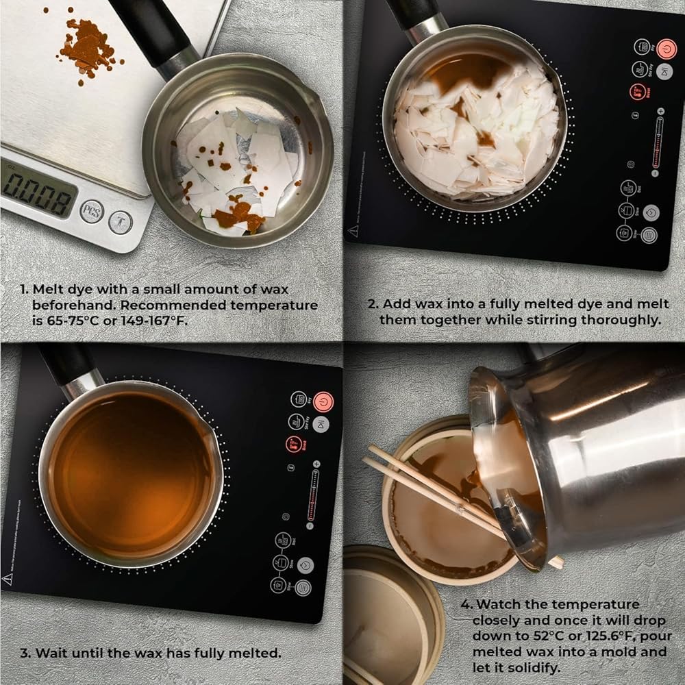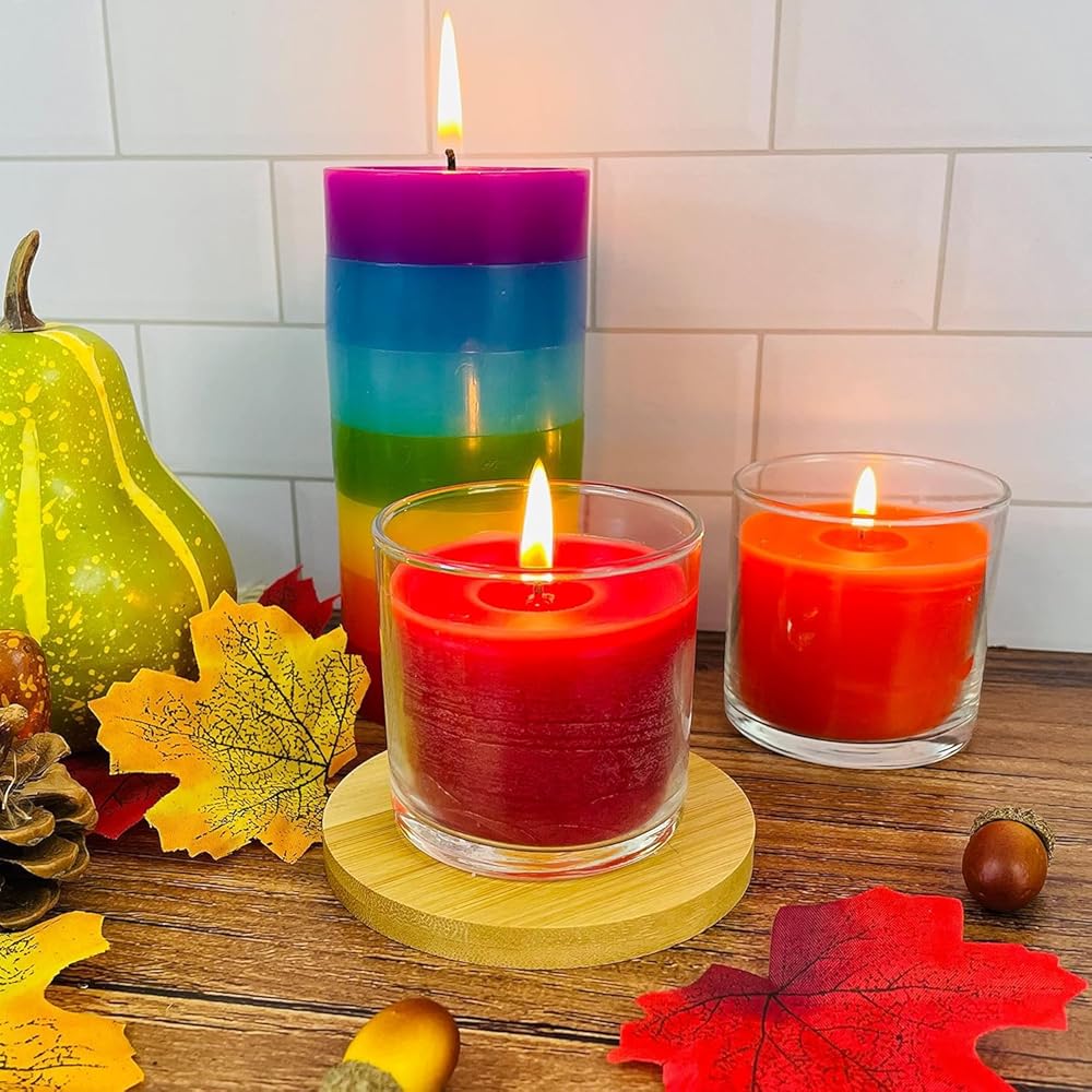 صبغة لون الشموع لشموع البارافين: شموع شمع البارافين مصبوغة بشكل جيد، ومع ذلك، قد تكون كثافة اللون أقل قليلاً من شمع الصويا. صبغة شمع شمع النحل: قد تكون كثافة لون الصبغة أقل مقارنة بالشمع الآخر. صبغة لون الشموع: صبغات الشموع الخاصة بنا مثالية لصنع شموع ملونة فريدة ومشرقة لأي مناسبة: أعياد الميلاد والعطلات وحفلات الزفاف وحفلات استقبال المولود وما إلى ذلك. صبغة لون الشموع: صبغات الشموع لصنع الشموع من كاندل كولور مثالية لصانعي الشموع المحترفين والمنزليين. أصباغنا مصنوعة بفخر في الولايات المتحدة الأمريكية.