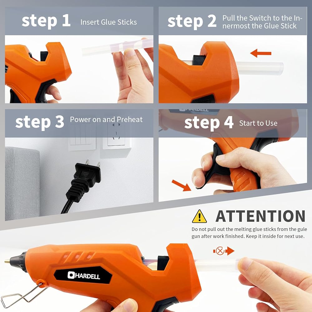 [التسخين المسبق السريع والتوزيع التلقائي] - يمكن أن يساعدك مسدس الغراء الذائب الساخن HARDELL على توفير المزيد من أعواد الغراء! بالضغط على الزناد مرة واحدة فقط، سوف يتدفق الغراء تلقائيًا وسلاسة، مما يقلل بشكل كبير من التقطير أثناء التشغيل. بالمقارنة مع مسدسات الغراء اللاسلكية التقليدية، فهي تحتوي على نظام تسخين أكثر تقدمًا وأكثر أمانًا.