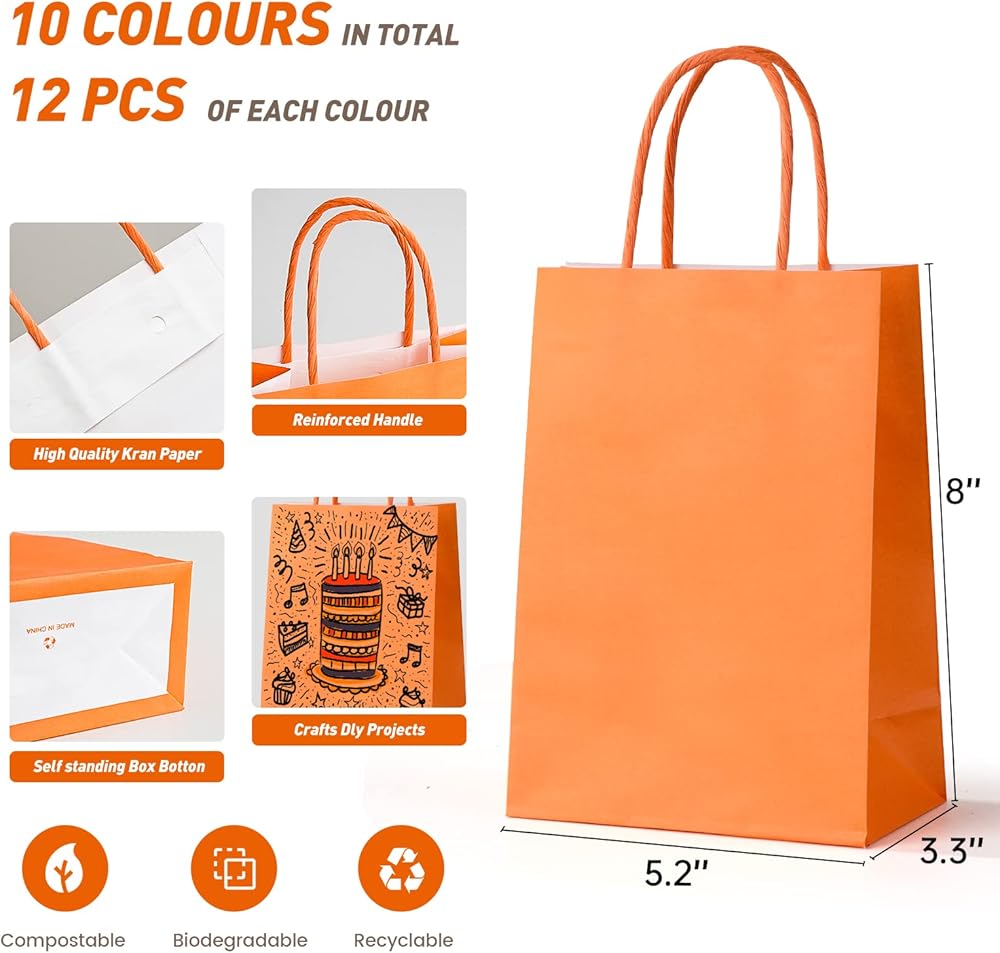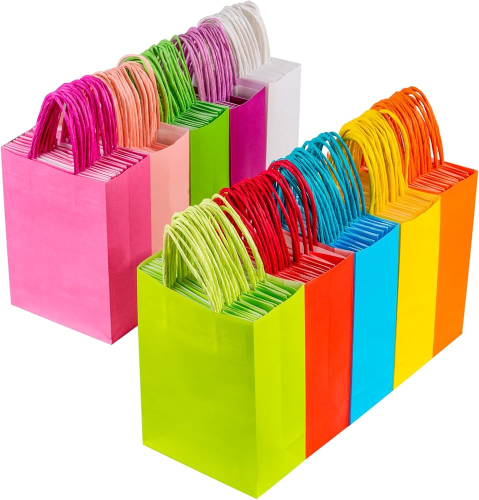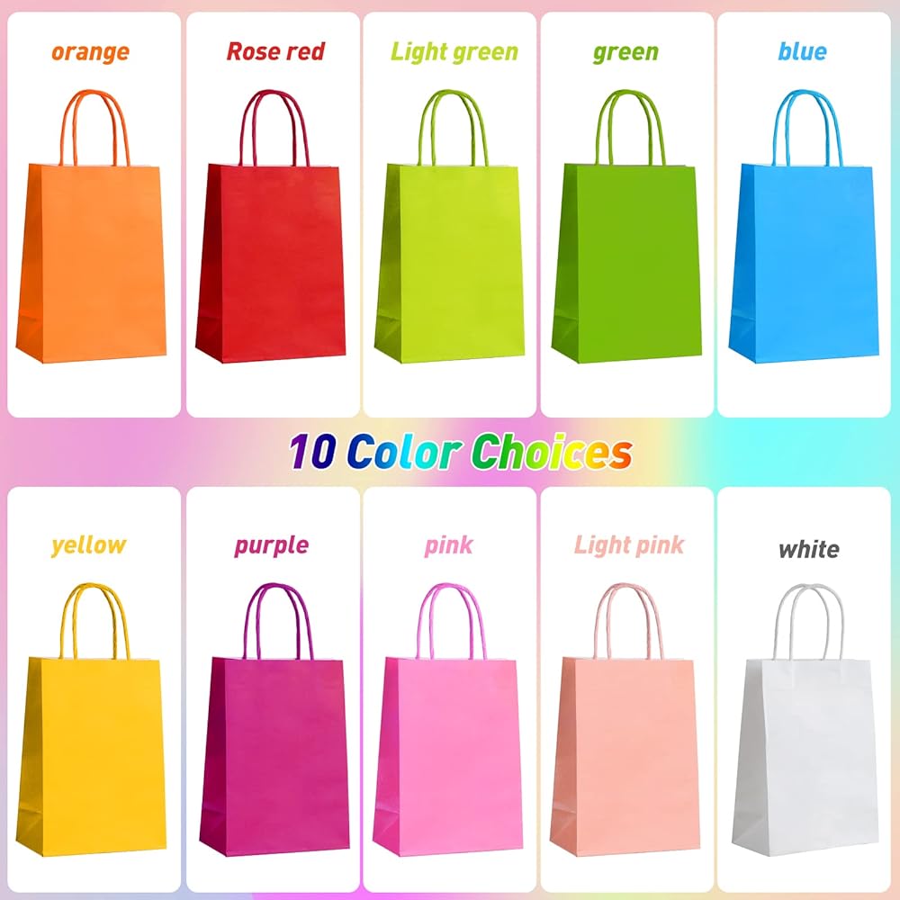 120 قطعة من حقائب هدايا الحفلات الورقية من كرافت، 10 ألوان من حقائب الهدايا الصغيرة بمقابض، حقائب هدايا لحفلات الأطفال، والاحتفالات، وحفلات استقبال المولود الجديد، وأعياد الميلاد، والحرف اليدوية، ومستلزمات الحفلات