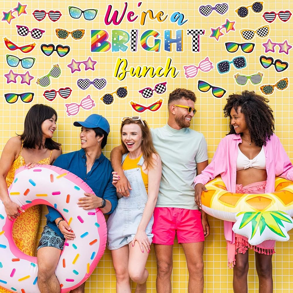 لوحة إعلانات النظارات الشمسية الصيفية، نحن مجموعة مشرقة من هاواي، قطع للحفلات ذات طابع هاواي للمدرسة والفصول الدراسية والمكتب وديكورات المنزل