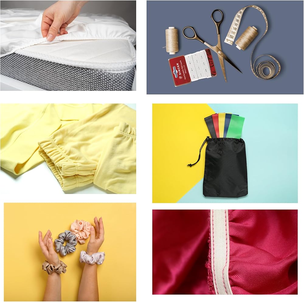 رائعة لأحزمة الخصر، وأربطة الأحذية، والأحزمة، وربطات الشعر، وخطوط العنق، والسراويل القصيرة، والتنانير، والأكمام، والسراويل الضيقة، وملابس السباحة، وعصابات الرأس، والأربطة، وأربطة الشعر المستعار، وربطات العنق الدائرية، والأقنعة، والقبعات، والحقائب، أو صناعة المجوهرات؛ سلك قوي قابل للتمدد لخياطة الملاءات الجاهزة أو أغطية سرير الأطفال أو أغطية الأريكة