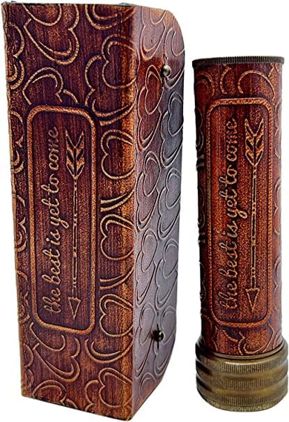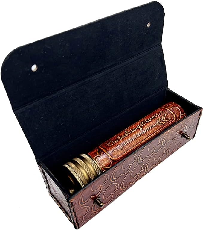 ☛KALEIDOSCOPE SIZE : 5.25 inch long, 1.5 inch diameter (objective lens). Leather Box Size: 6x2x2 inch(152.2x50.8x50.8mm). Color of Crystals: Shades of Blue, Green, Yellow, Orange and Red. Perfect Unique gift for kids, adults, can also be used as graduation and birthday gift. Small handy kaleidoscope, easy to carry and highly giftable.