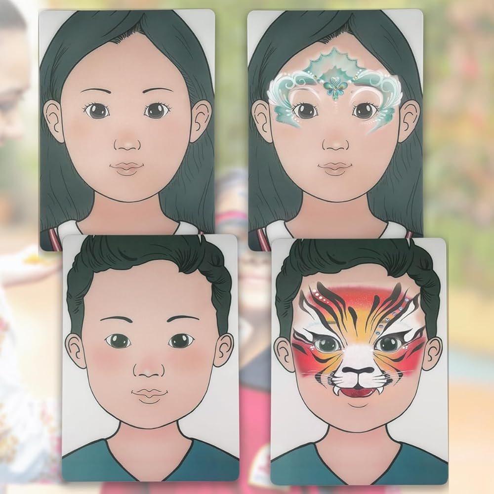 لوح تدريب على طلاء الوجه البلاستيكي بحجم ايه 4، سهل التنظيف يستخدم لتعلم وممارسة رسم الوجه لأي شخص