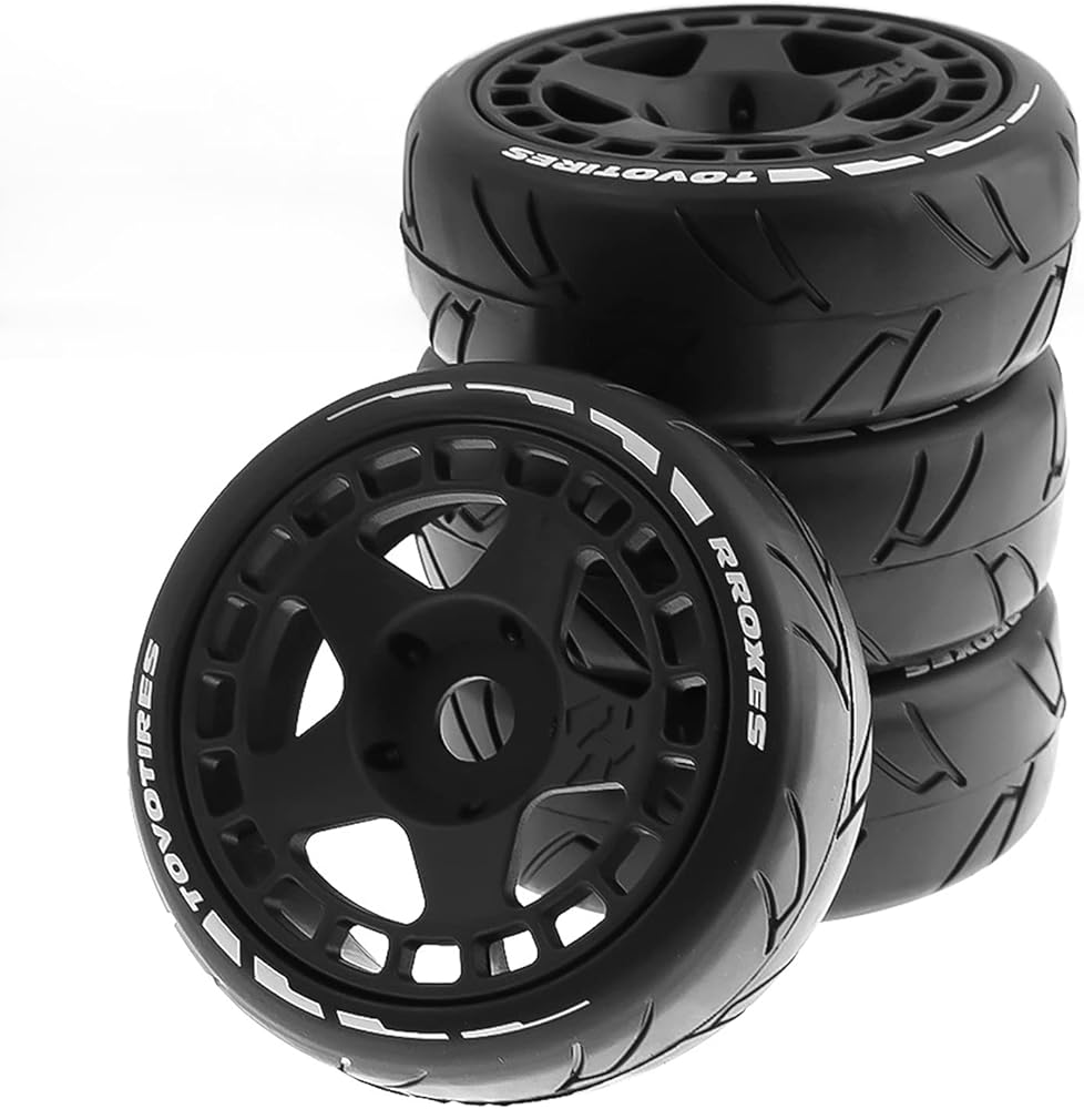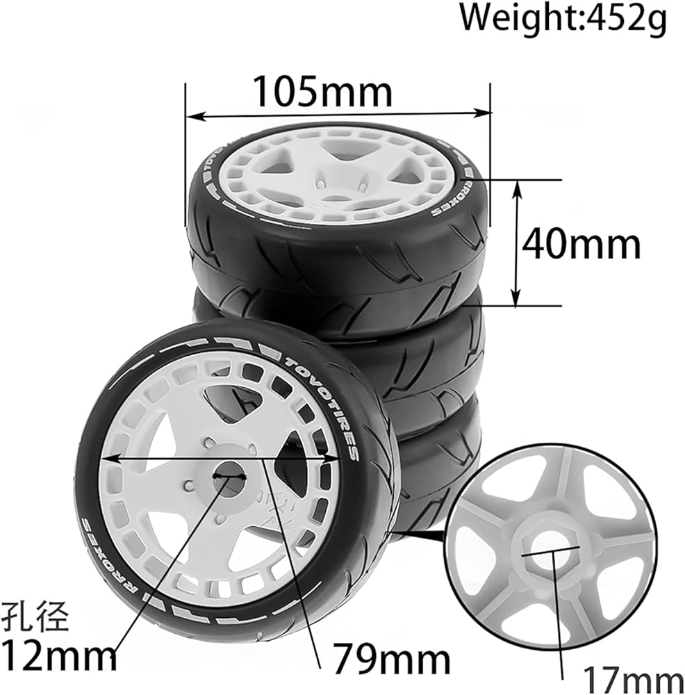 اطارات سيارة تعمل بجهاز تحكم عن بعد 105 ملم من سبونكسوند اطارات امامية وخلفية مع سداسي 17 ملم لسيارات التحكم عن بعد بمقياس 1/8 1/7، 4 قطع (اسود)