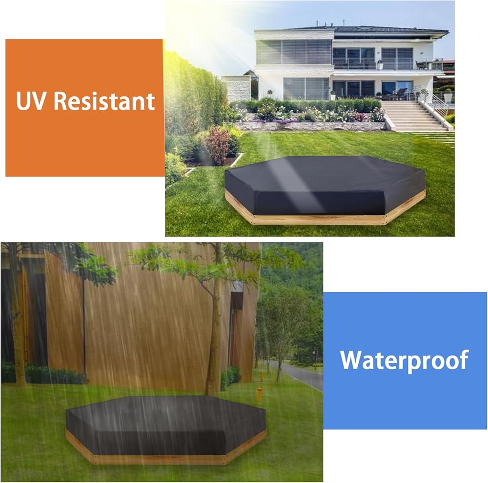 • 【غطاء صندوق رمل مقاوم للماء وشديد التحمل】غطاء صندوق الرمل توي يو مصنوع من قماش اوكسفورد 420D ومغطى بطبقة من البولي يوريثان المقاوم للماء، وهو مقاوم للطقس والماء والأشعة فوق البنفسجية ومقاوم للتمزق. بغض النظر عن الطقس، يمكن لغطاء صندوق الرمل السداسي حماية صندوق الرمل الخاص بك من آثار أشعة الشمس والمطر والثلج والرياح والغبار.