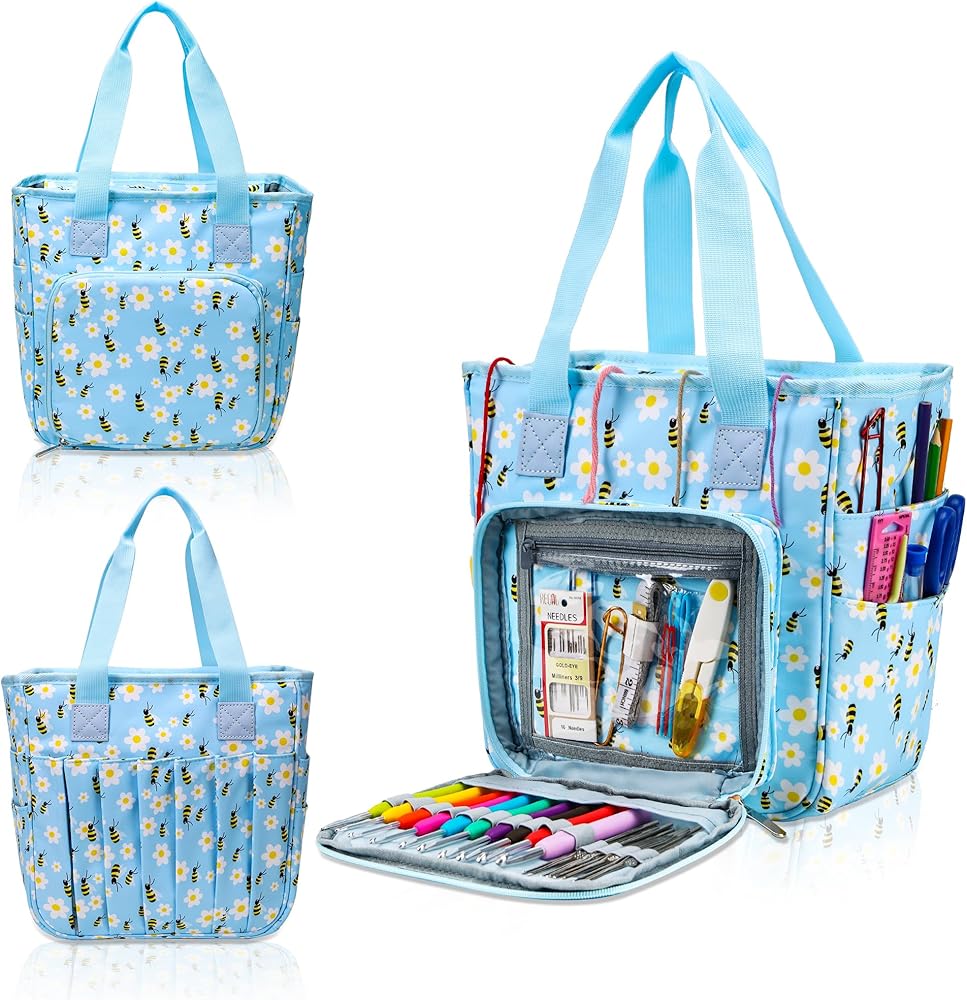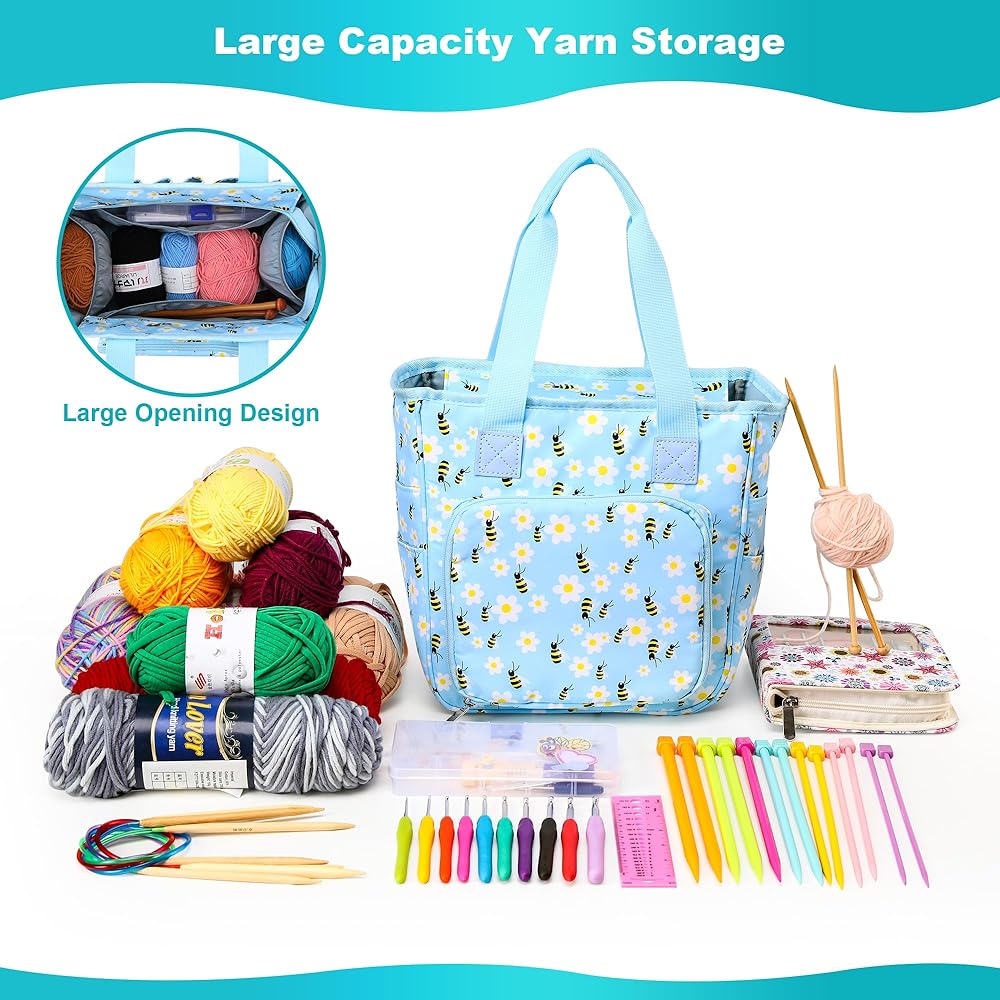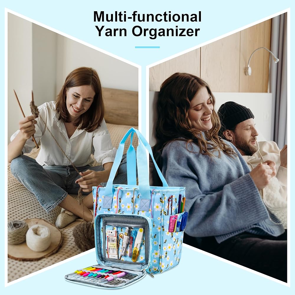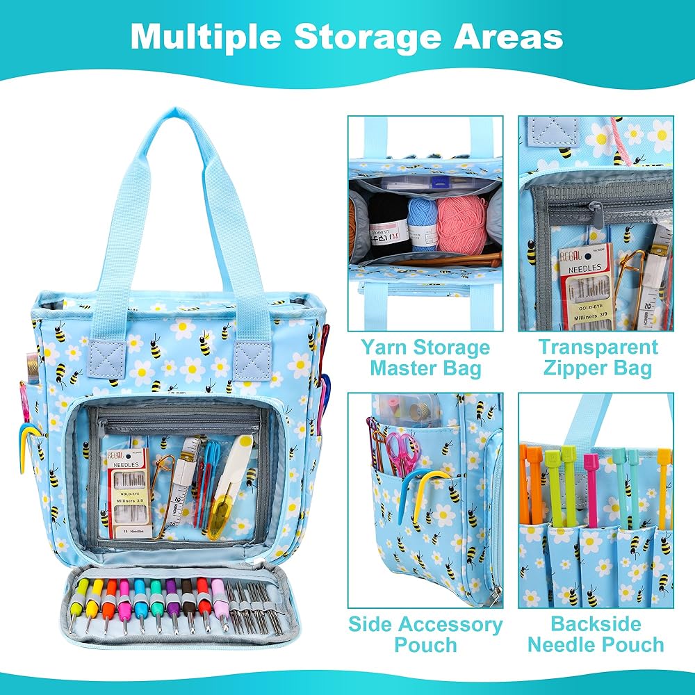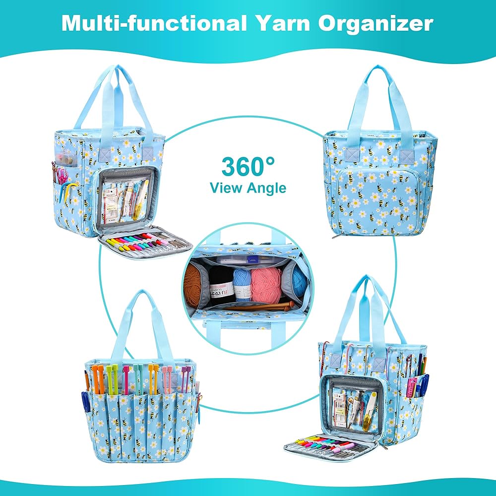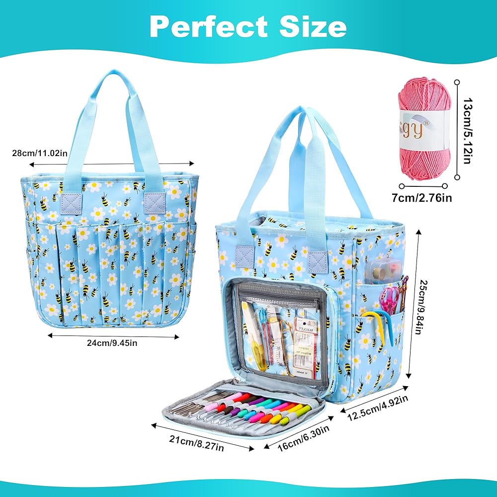 • 【تصميم محمول】 حقيبة الحياكة خفيفة الوزن الخاصة بنا سهلة الحمل بمقبضها المريح، مما يمنحك الحرية والراحة في أخذ مشروعاتك معك أينما ذهبت.