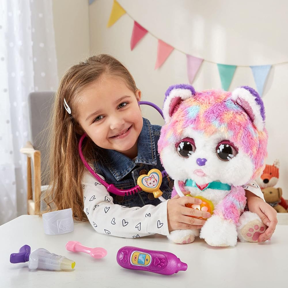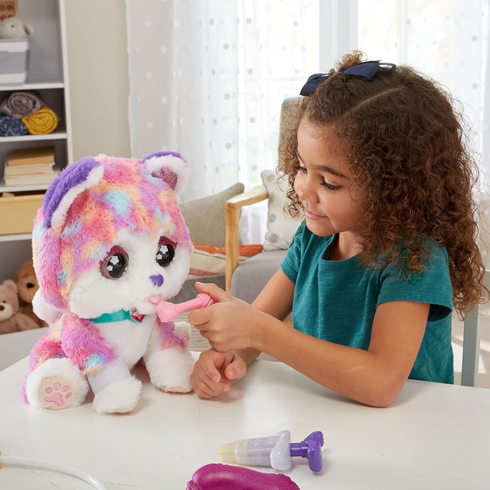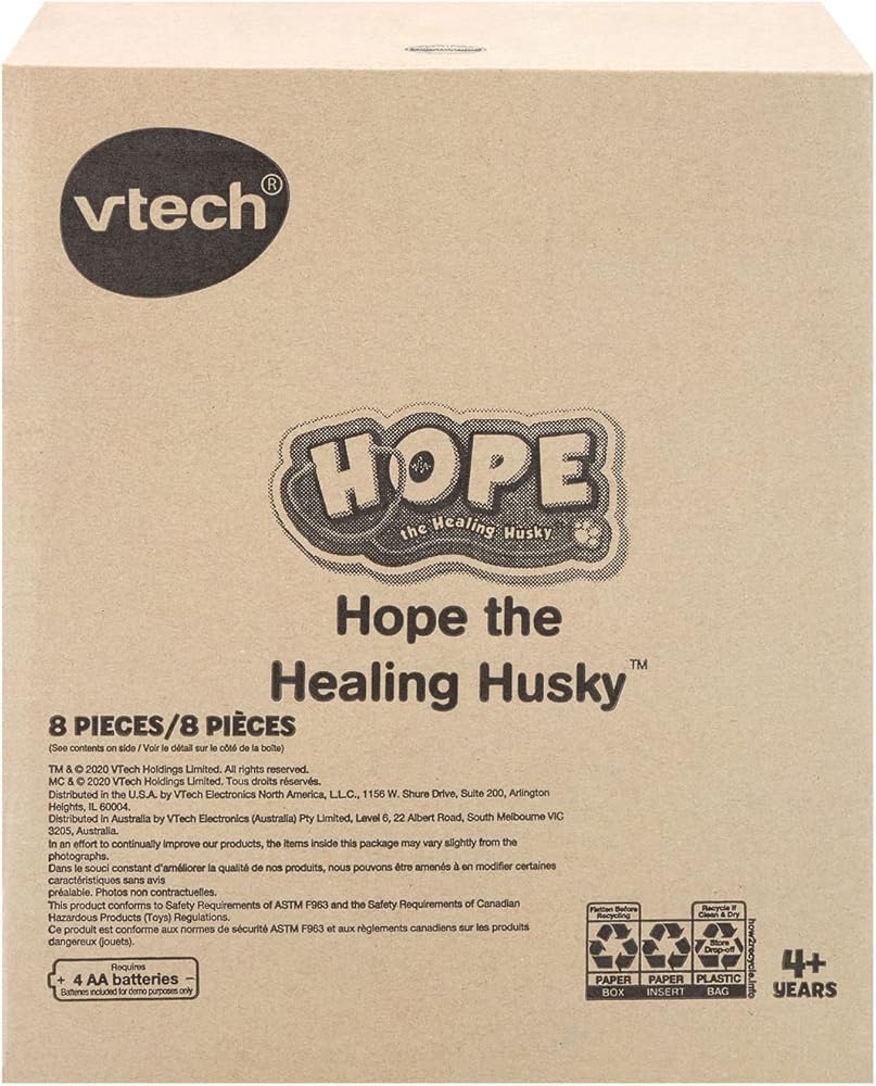 نأمل ألا تشعر شركة هيلينج هاسكي™ بحالة جيدة، ولكن يمكنك المساعدة! امسك سماعة الطبيب السحرية على صدر هوب، وستتحول من النباح إلى الكلمات لتخبرك بما تشعر به. سيحب الأطباء البيطريون في المستقبل استخدام الملحقات التفاعلية الأربعة للتحقق من درجة حرارتها وإعطاء فرصة علاجية وضمادات لها وأكثر من ذلك. ثم ارتدي طوق التعافي لمساعدتها على الشفاء. قم بتخزين جميع الملحقات في الحقيبة الطبية للتنظيف السريع. استكشف لعب الأدوار من خلال التفاعل مع أزرار ومستشعرات هوب السبعة التي تمكنها من التحدث والنباح والتحرك. ستصدر الأمل أصواتًا مختلفة لإظهار ما إذا كانت جائعة أو تعاني من نزلة برد أو حمى أو تعاني من جرح في الساق أو تشعر بالحكة. مخصصة للأعمار من 4 سنوات فما فوق. تتطلب 4 بطاريات ايه ايه. البطاريات متضمنة لأغراض العرض التوضيحي فقط. يوصى باستخدام بطاريات جديدة للاستخدام المنتظم.