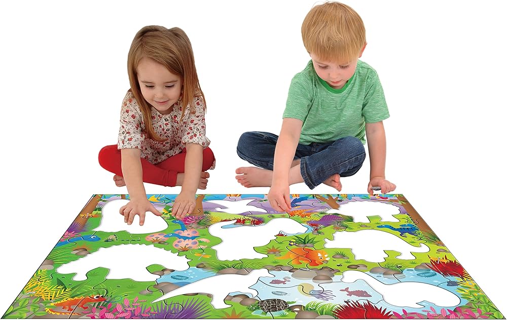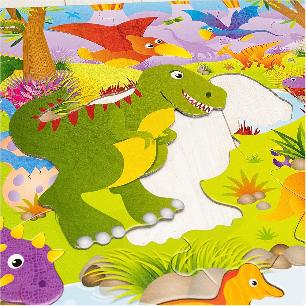 - أحجية جيغسو كبيرة جدًا مكونة من 30 قطعة مع 8 قطع خاصة على شكل ديناصورات.