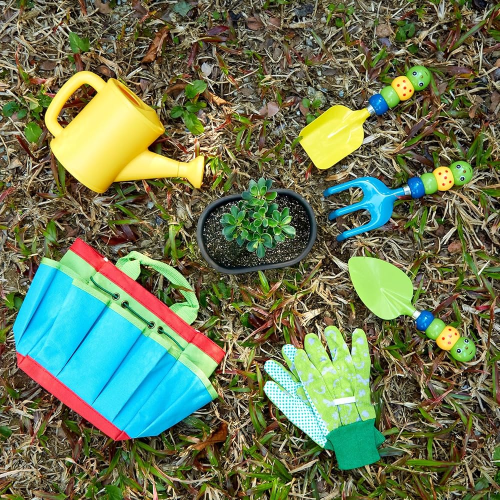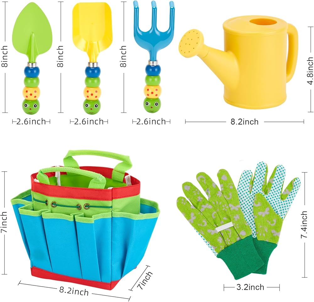 مجموعة أدوات حديقة الأطفال الخضراء من فيتنات، 6 قطع من أدوات الحديقة بما في ذلك علبة السقاية والمجرفة والشوكة وقفازات البستنة للأطفال وحقيبة حمل الحديقة، كل ذلك في مجموعة واحدة